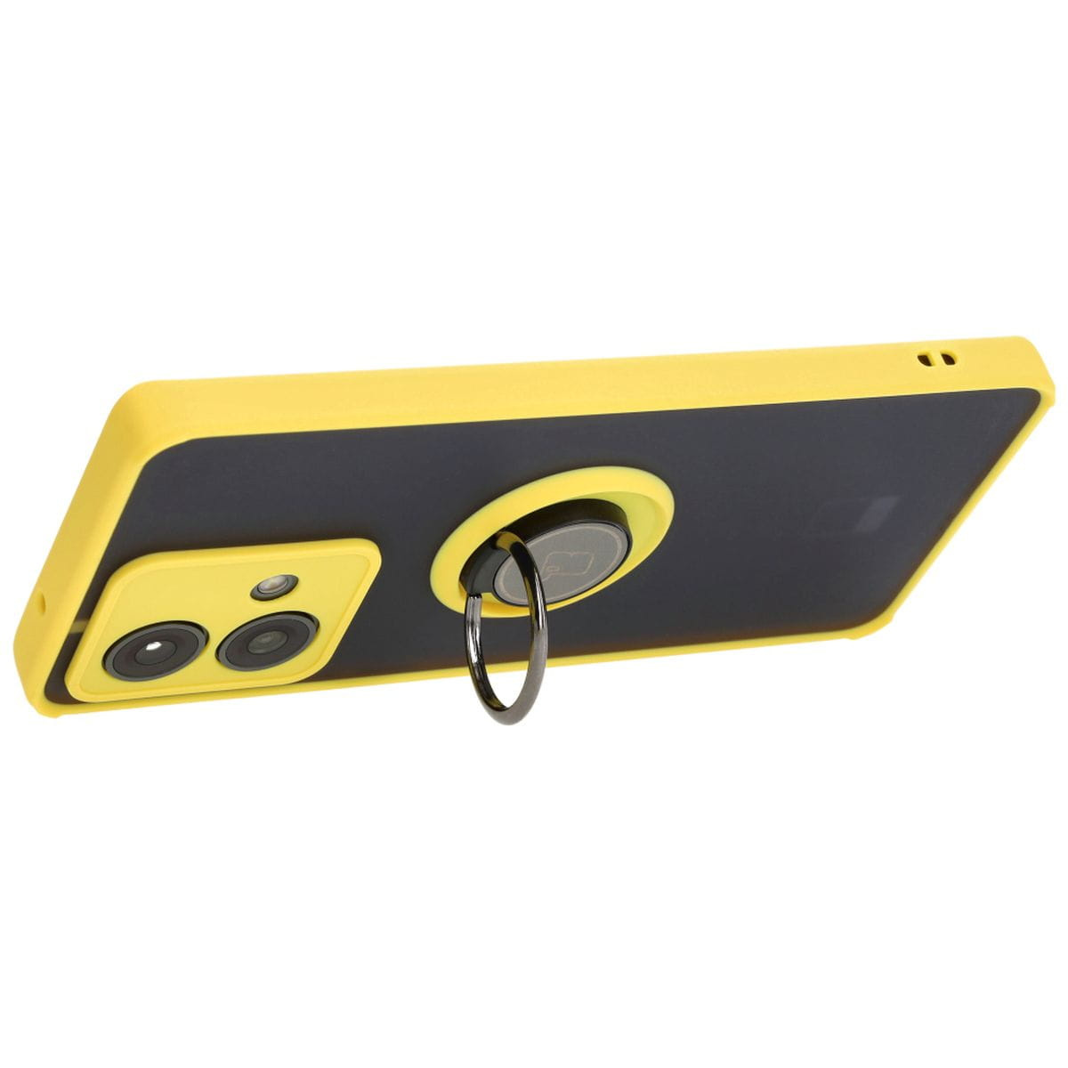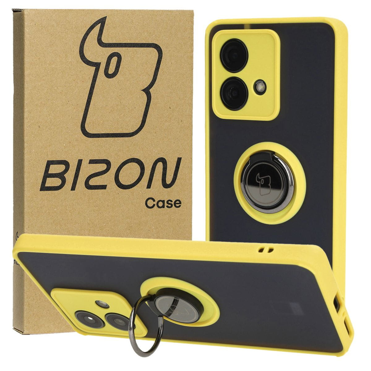 Etui z uchwytem na palec Bizon Case Hybrid Ring do Motorola Edge 40 Neo, przydymione z żółtą ramką