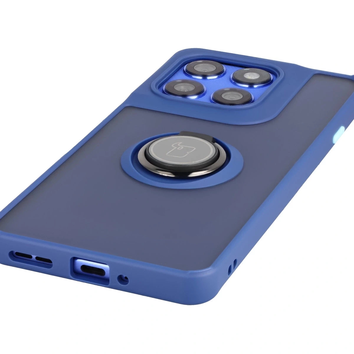 Etui z uchwytem na palec Bizon Case Hybrid Ring do Motorola Edge 60 Pro, przydymione z granatową ramką