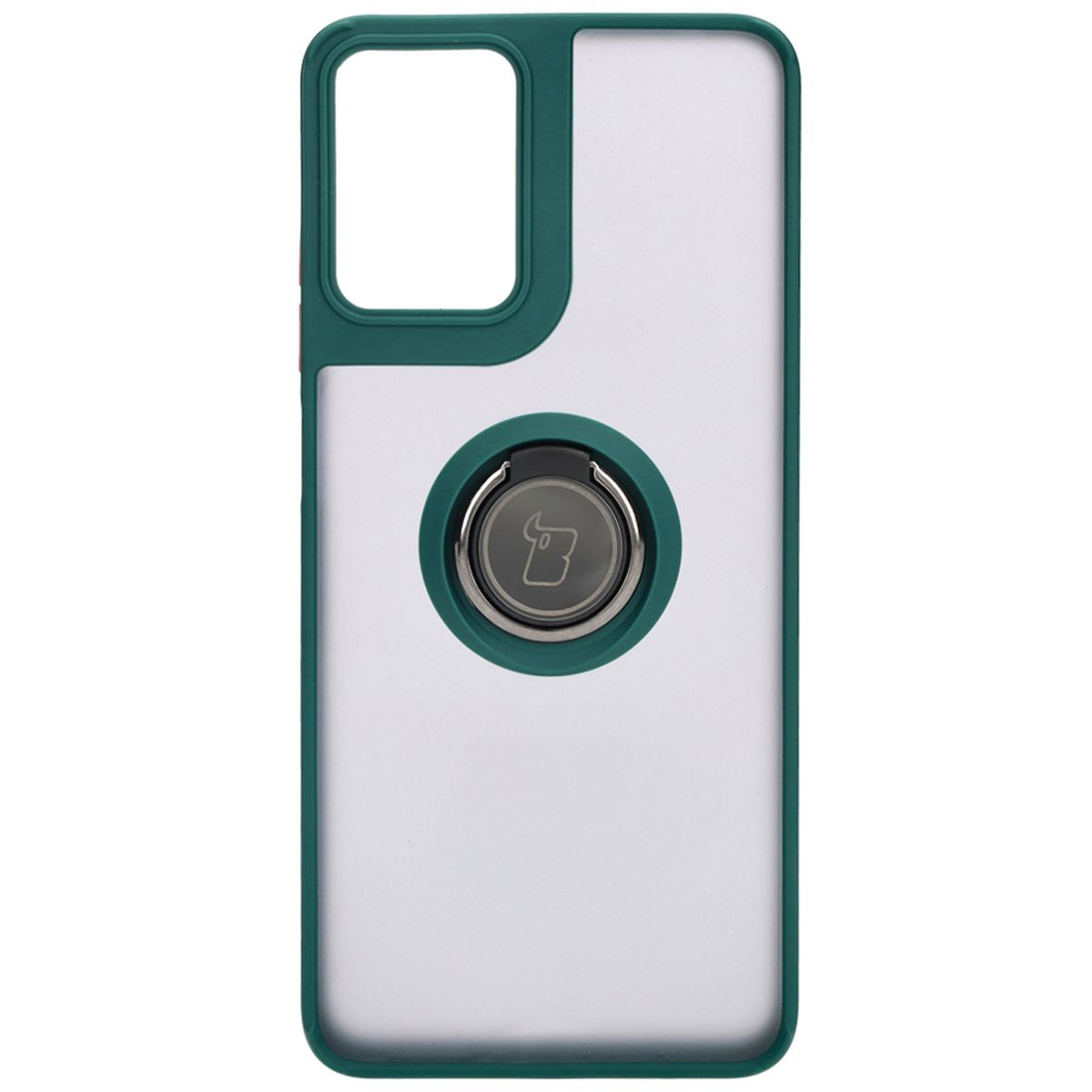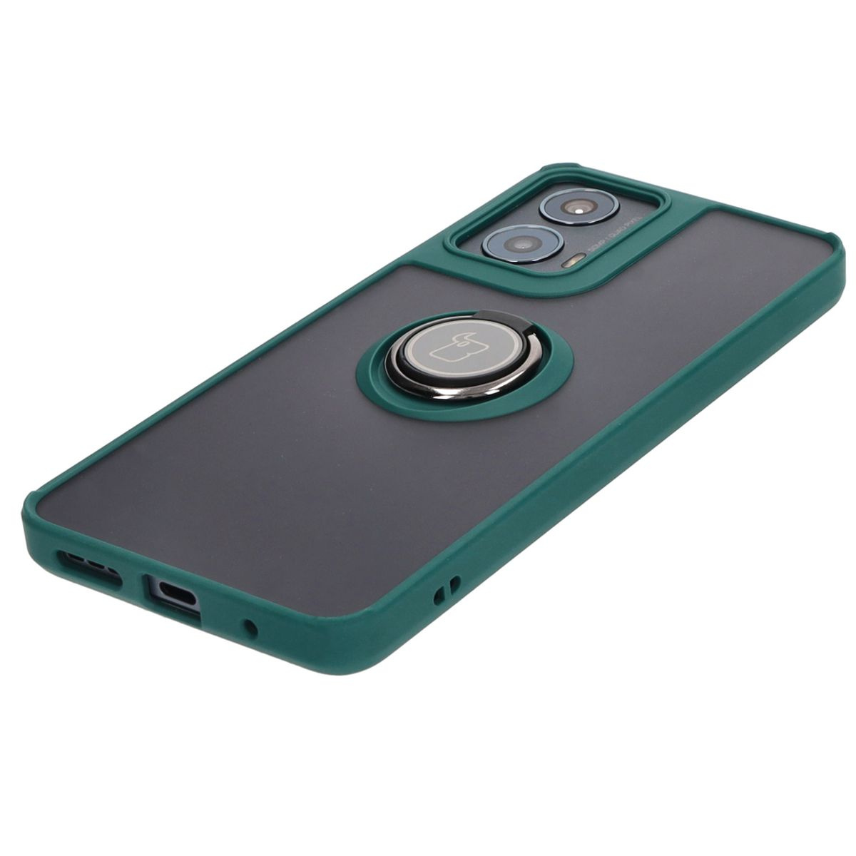 Etui z uchwytem na palec Bizon Case Hybrid Ring do Motorola Moto G04 / G24 / G24 Power, przydymione z ciemnozieloną ramką