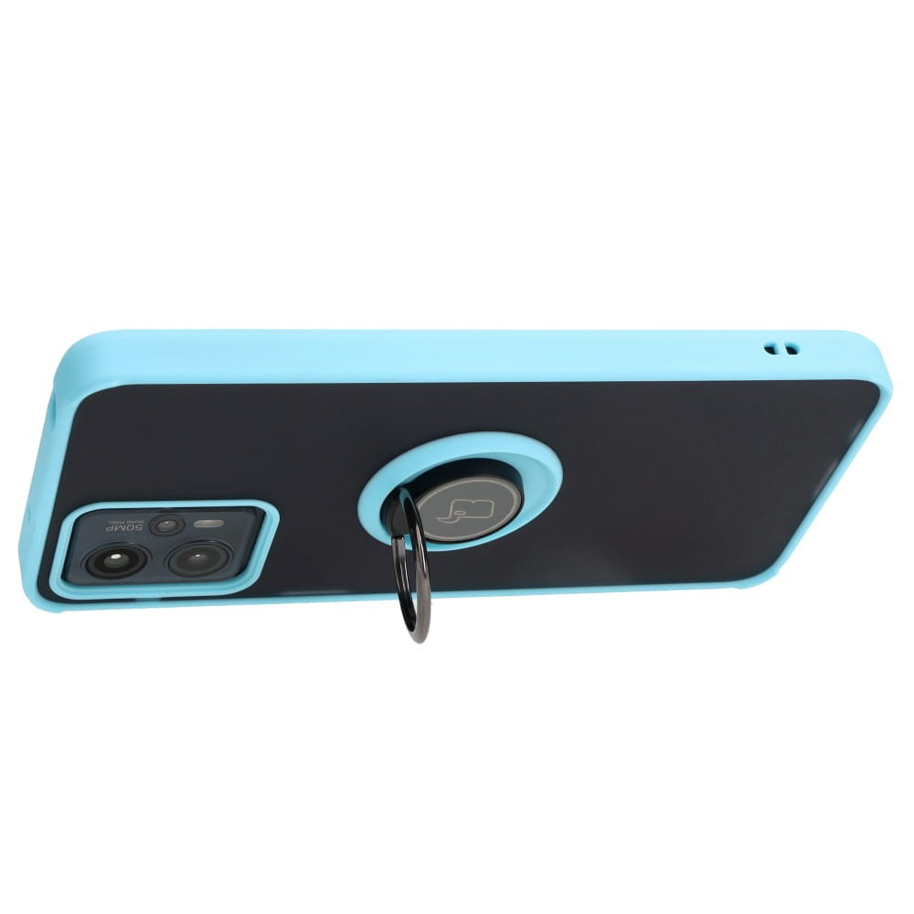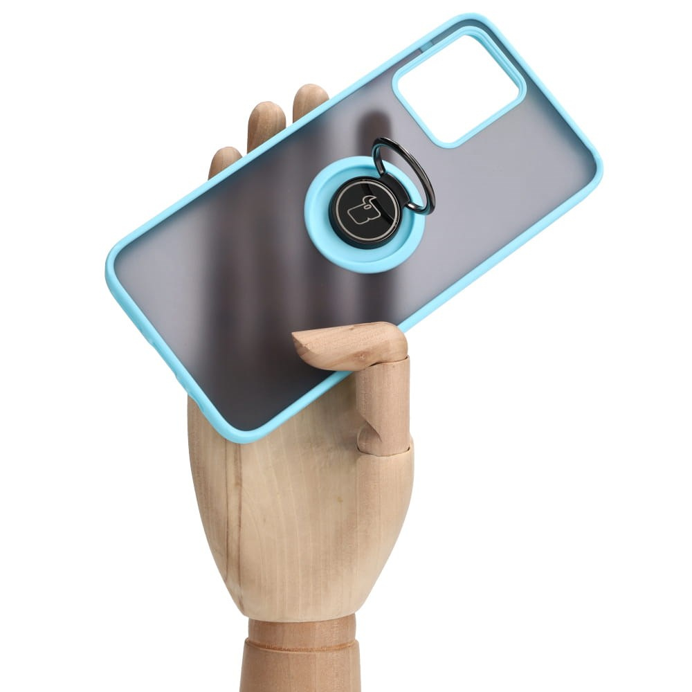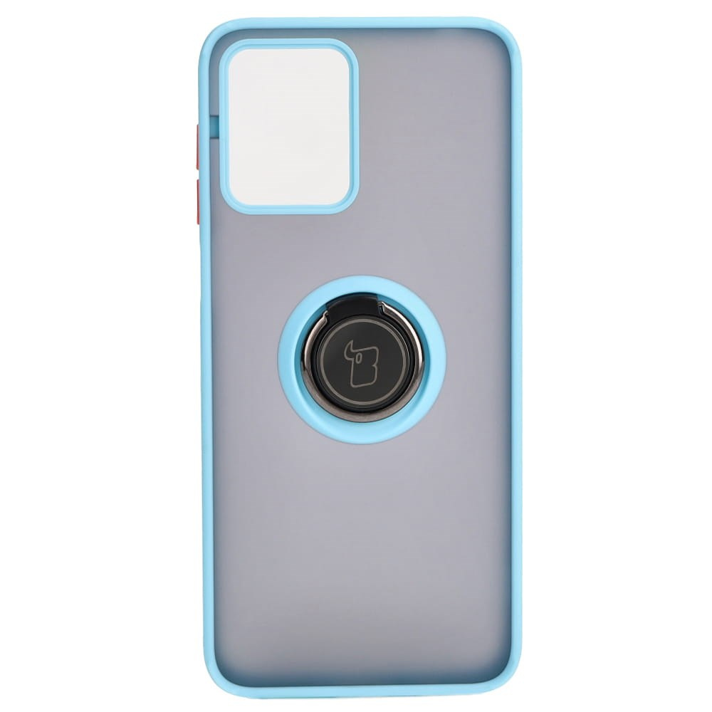 Etui z uchwytem na palec Bizon Case Hybrid Ring do Motorola Moto G13 / G23 / G53 5G, przydymione z jasnoniebieską ramką