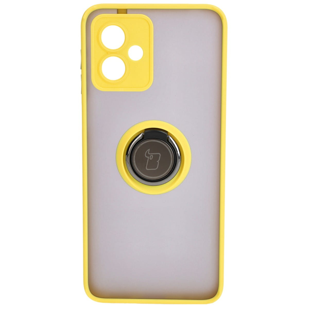 Etui z uchwytem na palec Bizon Case Hybrid Ring do Motorola Moto G14, przydymione z żółtą ramką