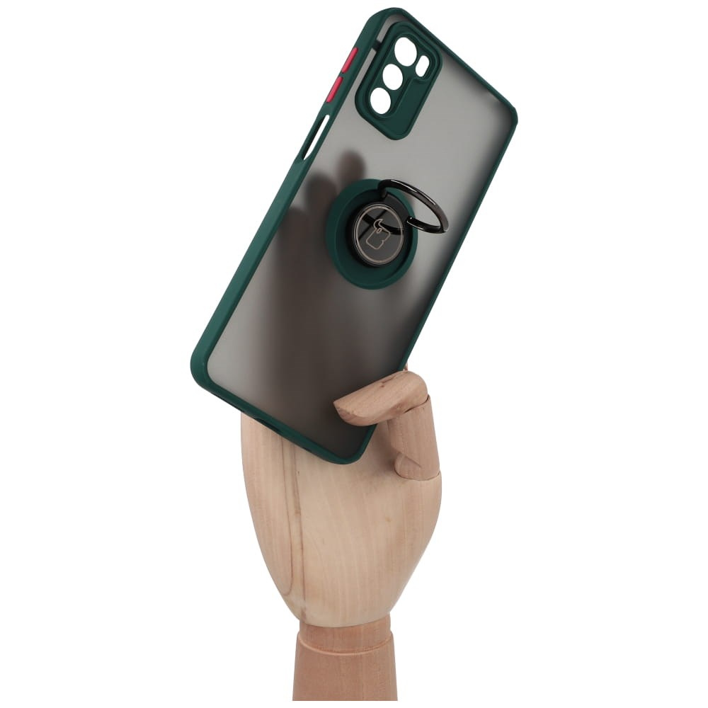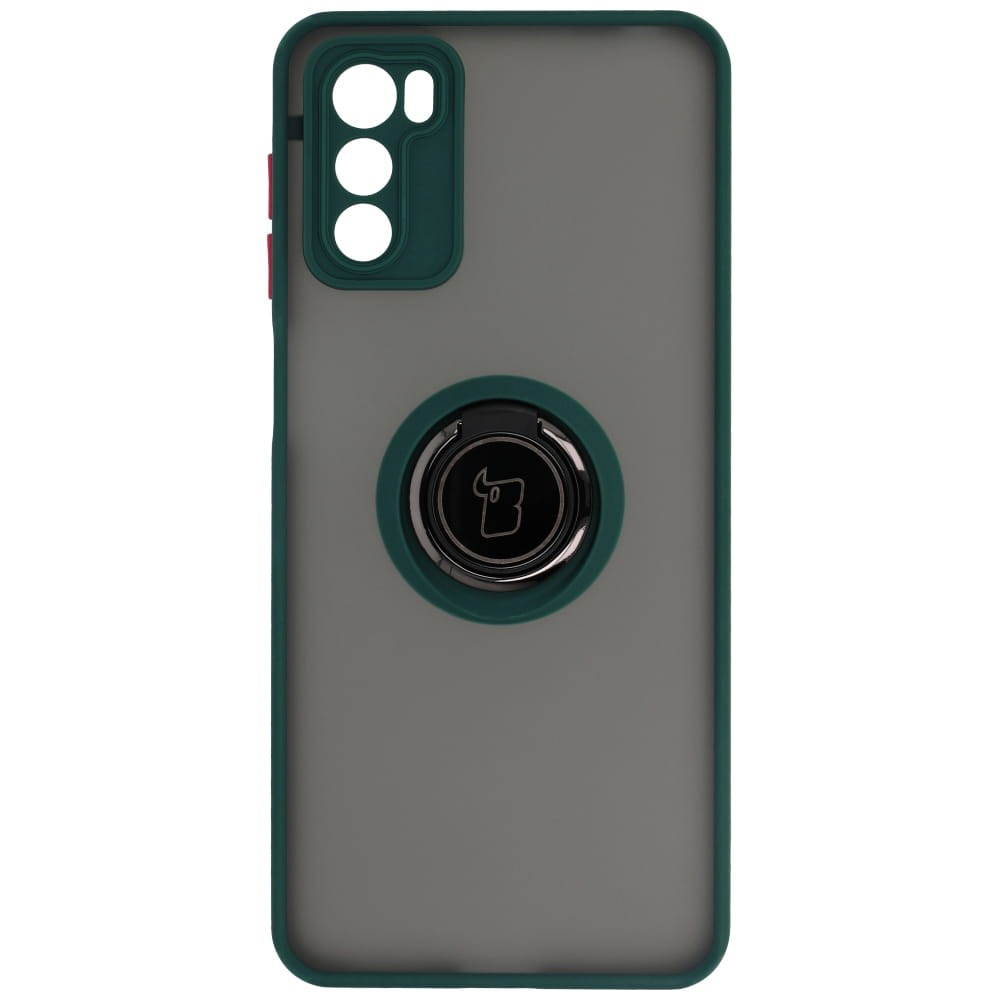 Etui z uchwytem na palec Bizon Case Hybrid Ring do Motorola Moto G42 , przydymione z ciemnozieloną ramką