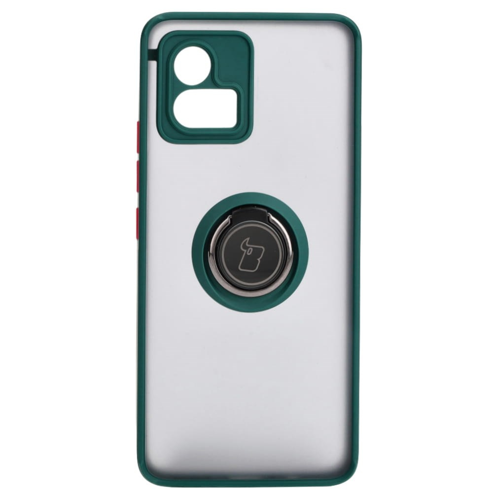 Etui z uchwytem na palec Bizon Case Hybrid Ring do Motorola Moto G72, przydymione z ciemnozieloną ramką
