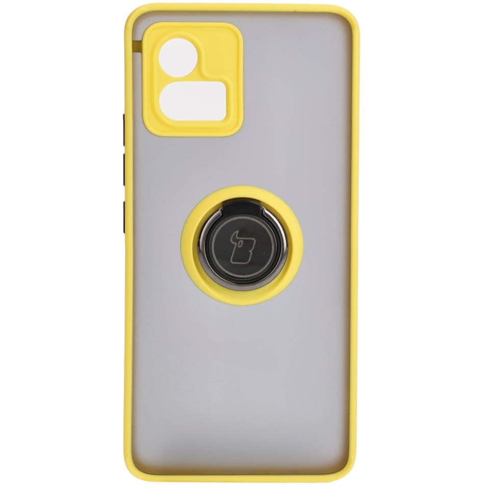 Etui z uchwytem na palec Bizon Case Hybrid Ring do Motorola Moto G72, przydymione z żółtą ramką