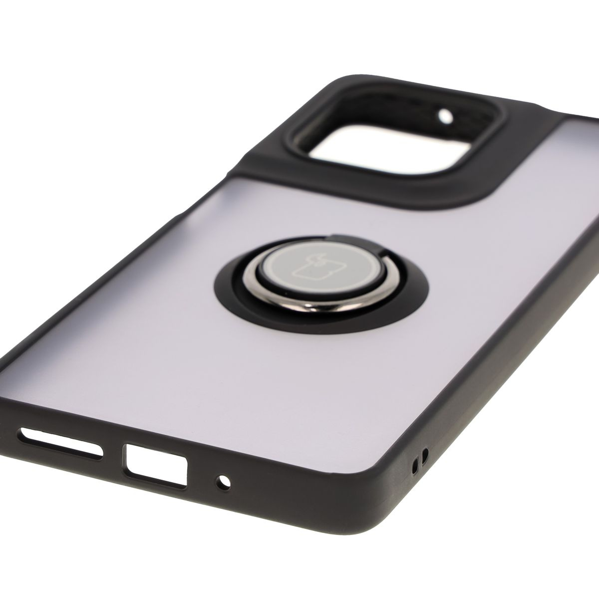 Etui z uchwytem na palec Bizon Case Hybrid Ring do Motorola Moto G75 5G, przydymione z czarną ramką