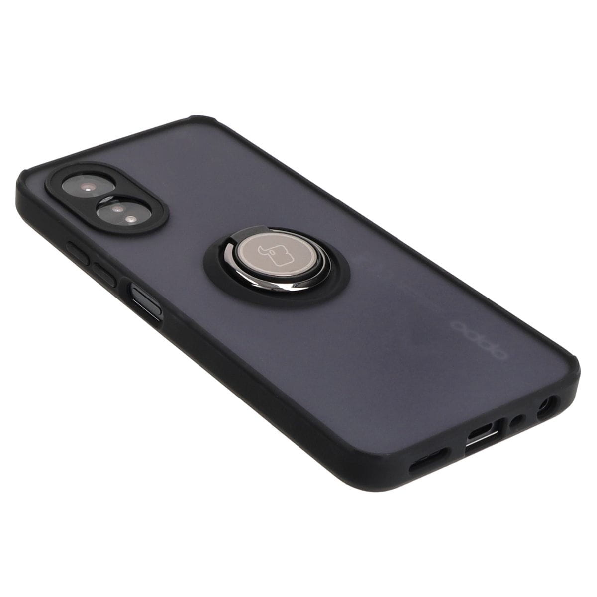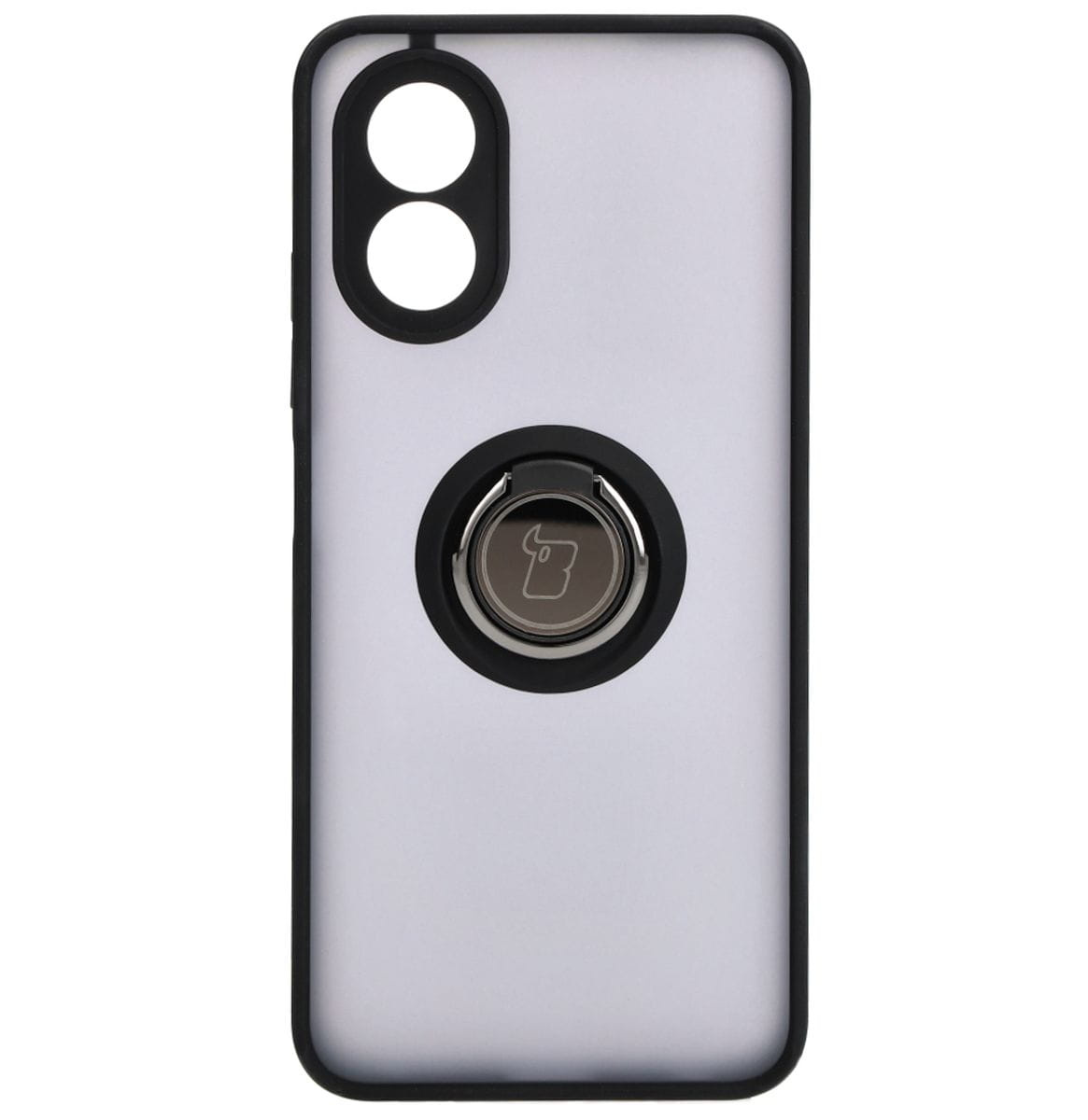 Etui z uchwytem na palec Bizon Case Hybrid Ring do Oppo A38 4G, przydymione z czarną ramką