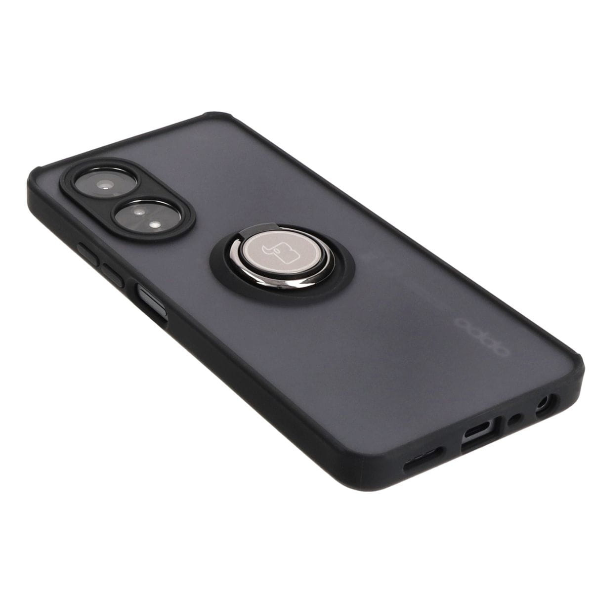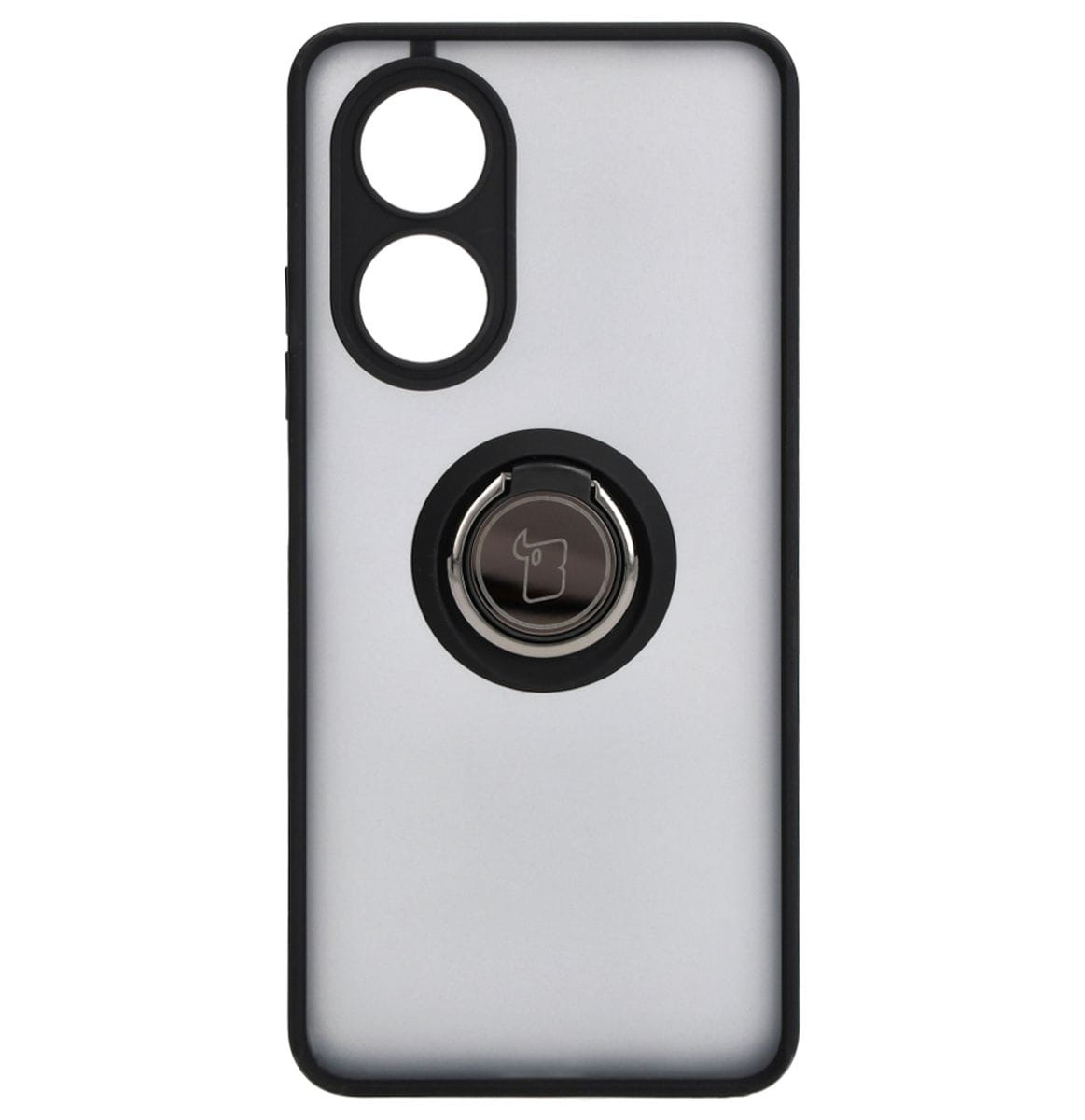 Etui z uchwytem na palec Bizon Case Hybrid Ring do Oppo A58 4G, przydymione z czarną ramką