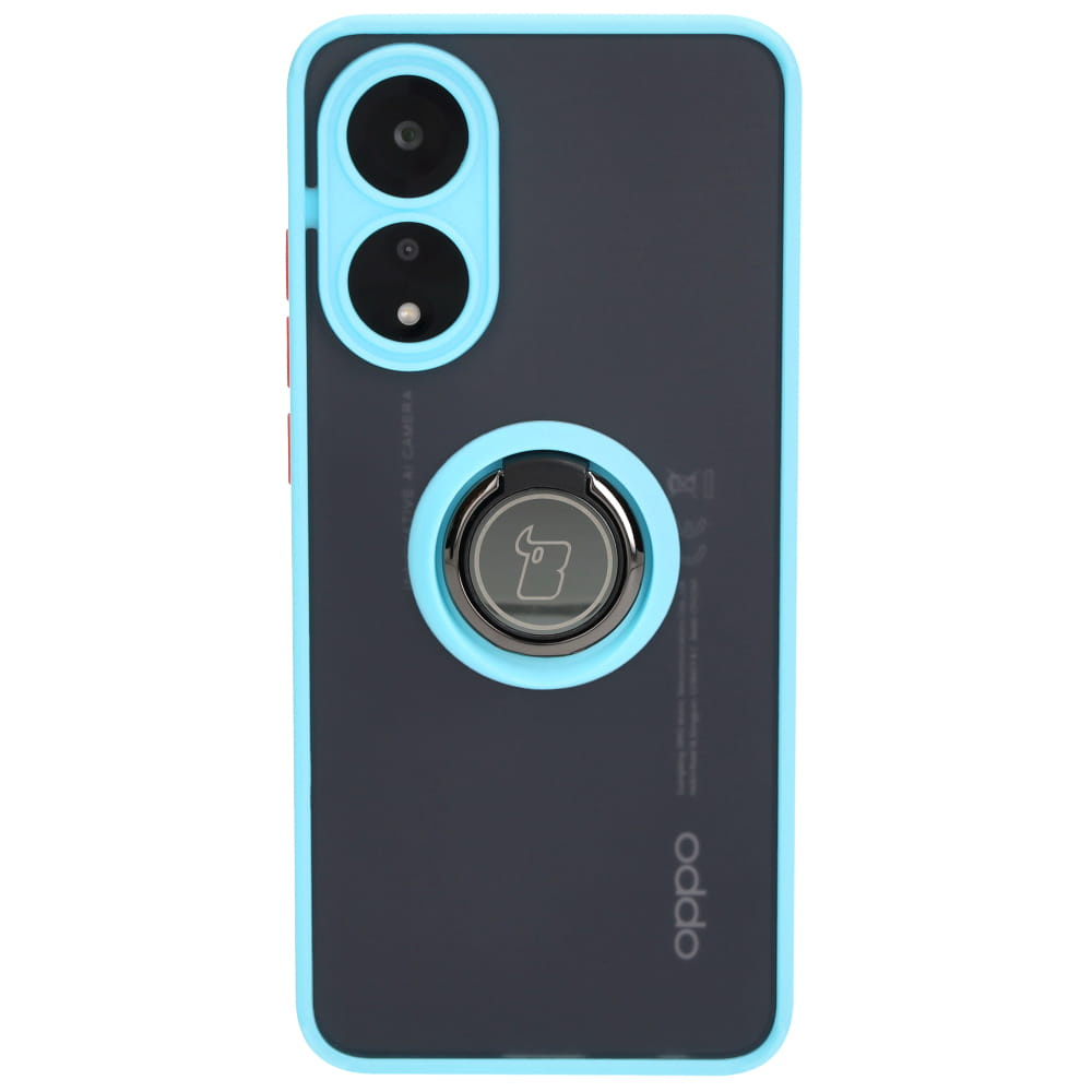 Etui z uchwytem na palec Bizon Case Hybrid Ring do Oppo A78 4G, przydymione z jasnoniebieską ramką