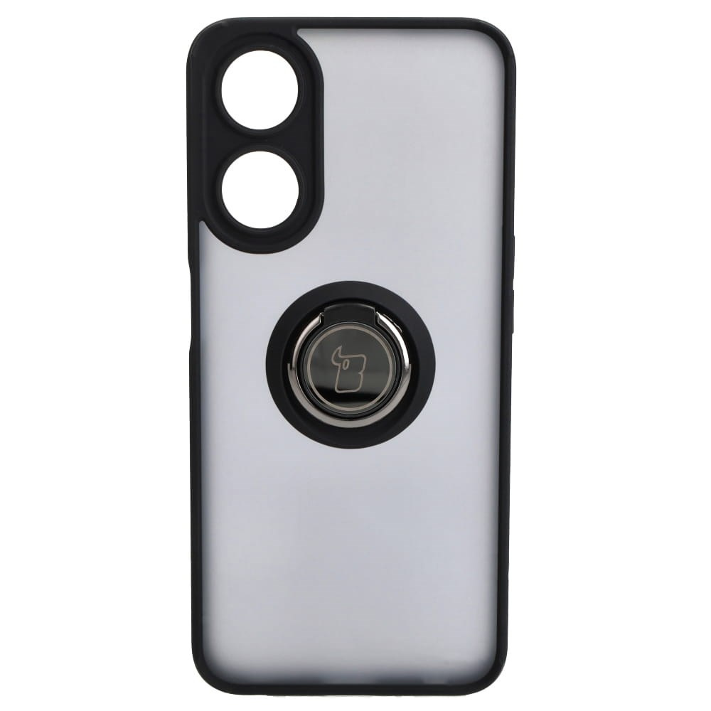 Etui z uchwytem na palec Bizon Case Hybrid Ring do Oppo A78 5G, przydymione z czarną ramką