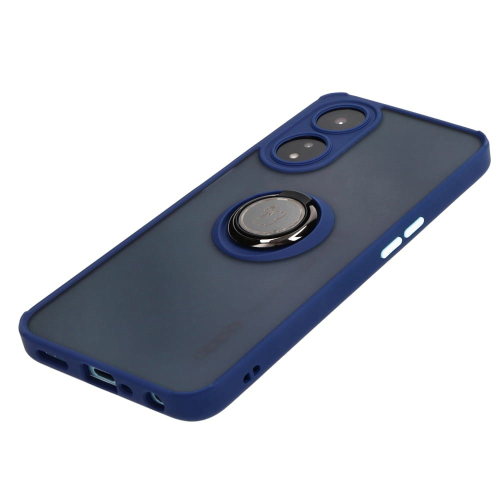 Etui z uchwytem na palec Bizon Case Hybrid Ring do Oppo A78 5G, przydymione z granatową ramką