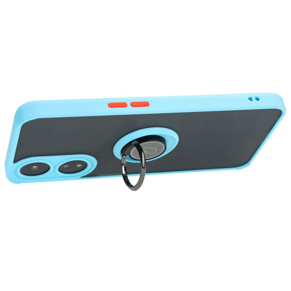 Etui z uchwytem na palec Bizon Case Hybrid Ring do Oppo A78 5G, przydymione z jasnoniebieską ramką