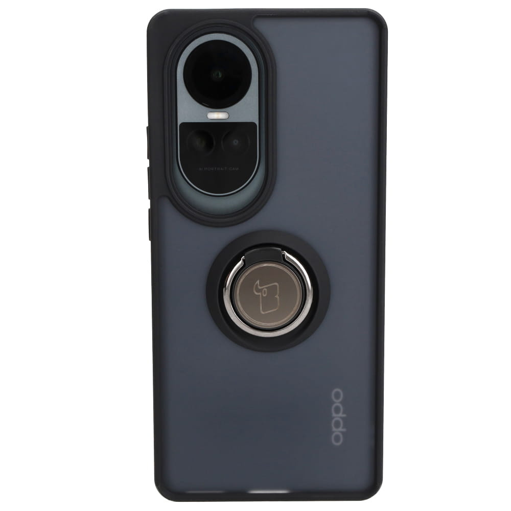 Etui z uchwytem na palec Bizon Case Hybrid Ring do Oppo Reno10 / 10 Pro, przydymione z czarną ramką