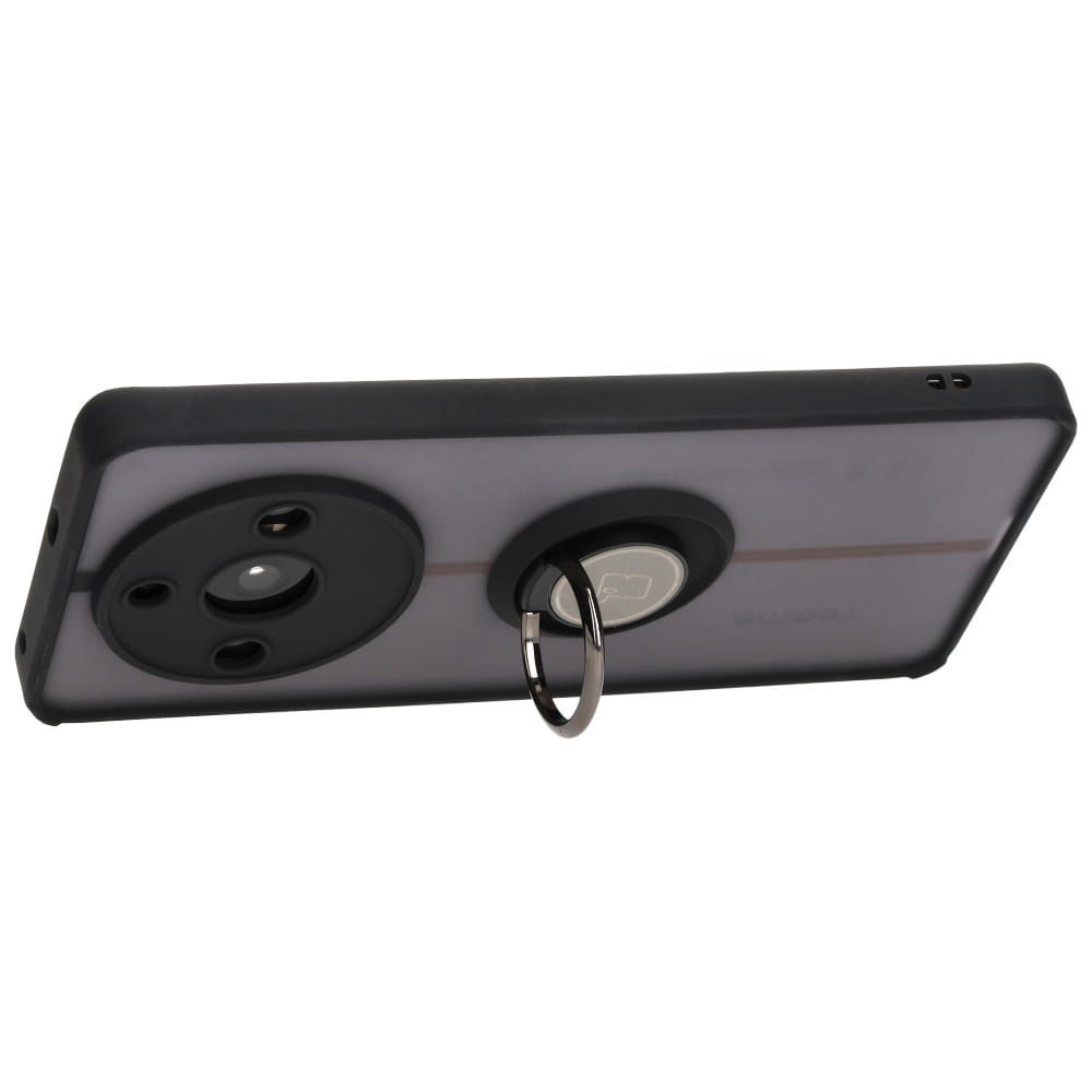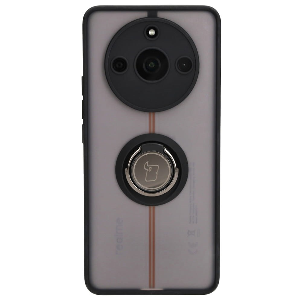Etui z uchwytem na palec Bizon Case Hybrid Ring do Realme 11 Pro / 11 Pro+, przydymione z czarną ramką