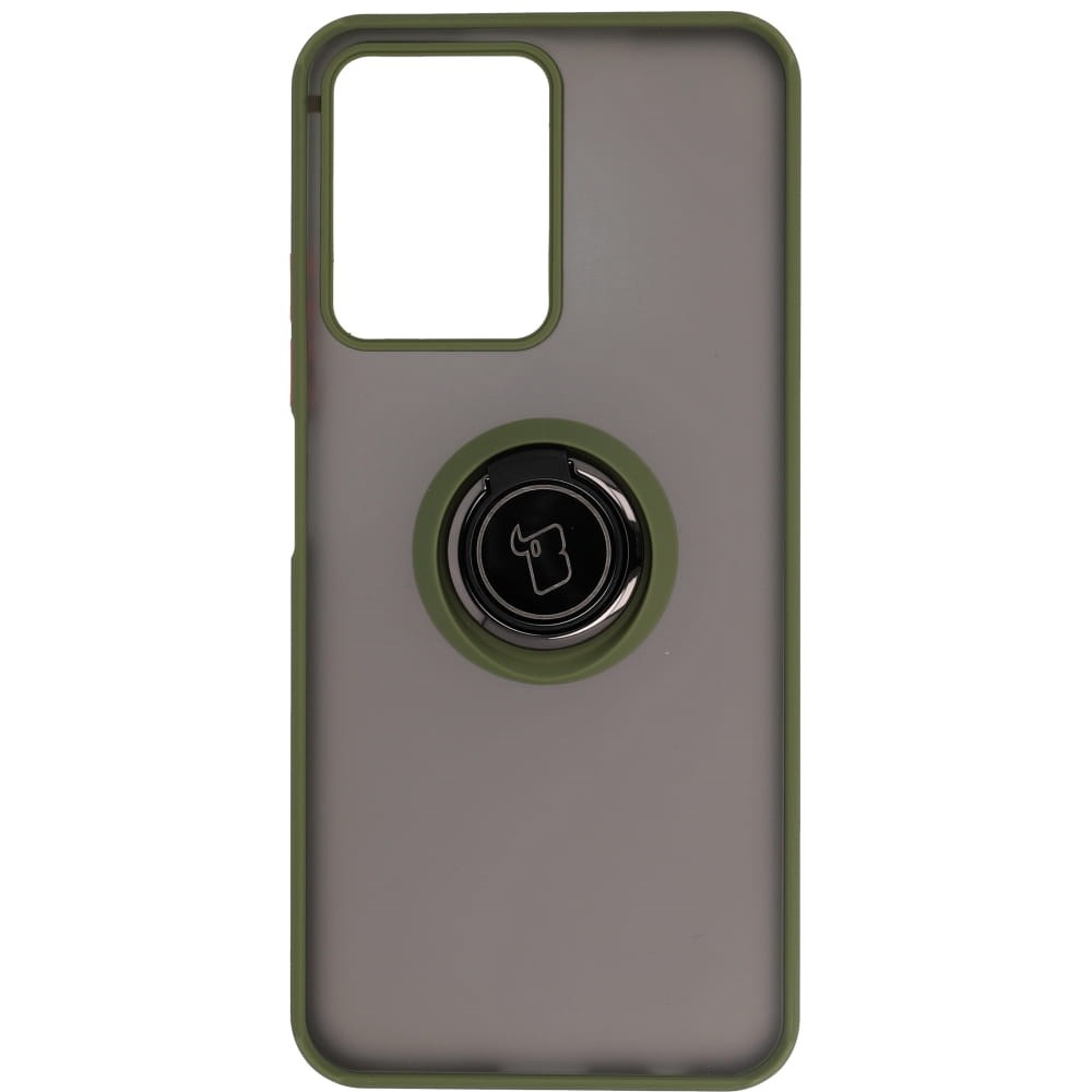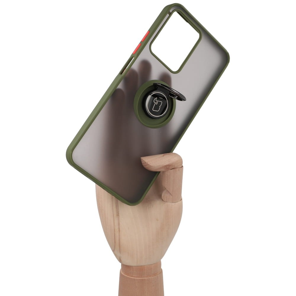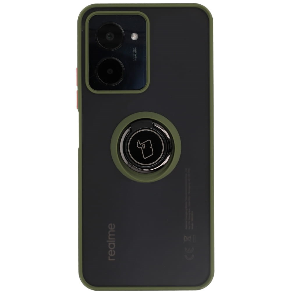 Etui z uchwytem na palec Bizon Case Hybrid Ring do Realme C33 / C30 / Narzo 50i Prime, przydymione z zieloną ramką