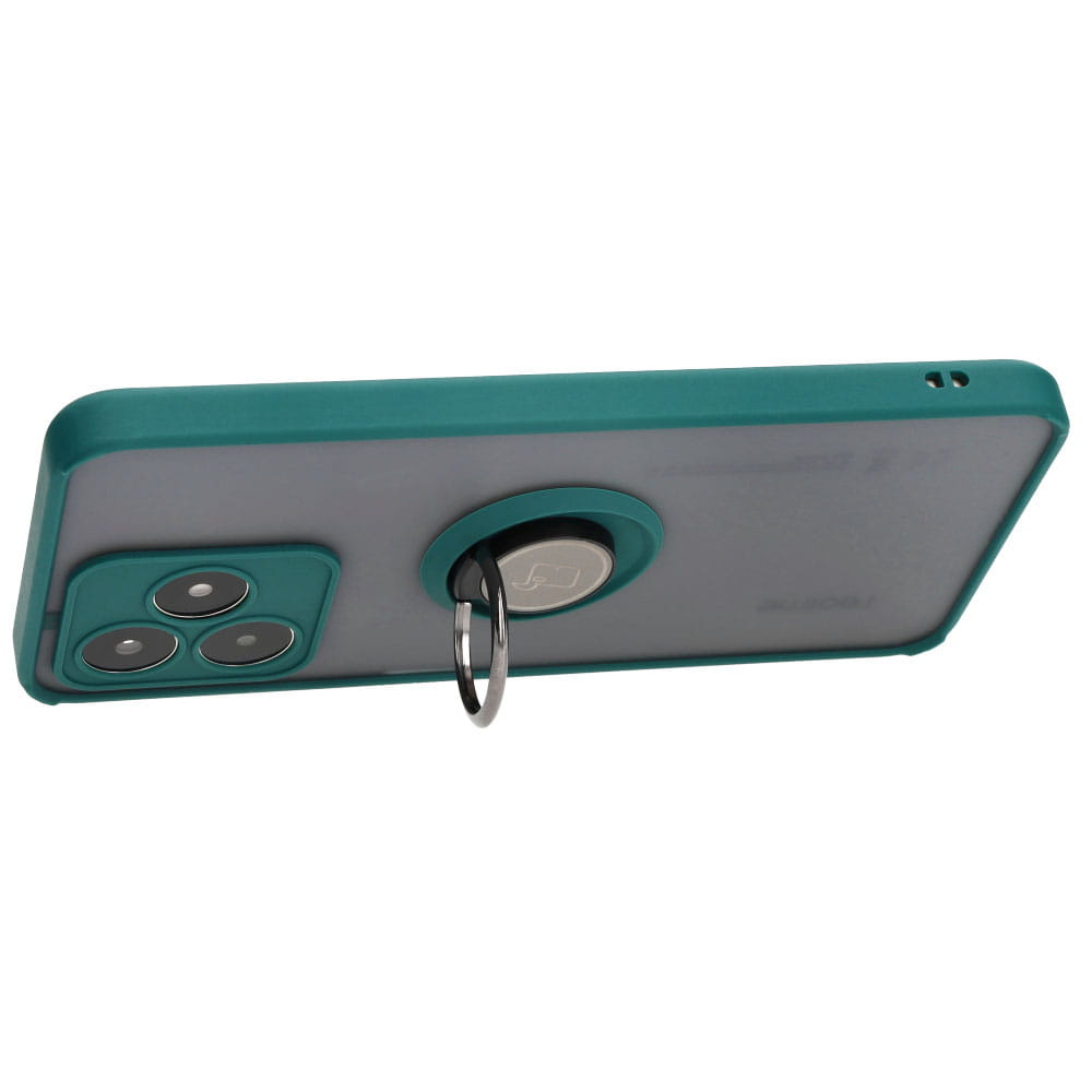 Etui z uchwytem na palec Bizon Case Hybrid Ring do Realme C53 / C51, przydymione z ciemnozieloną ramką