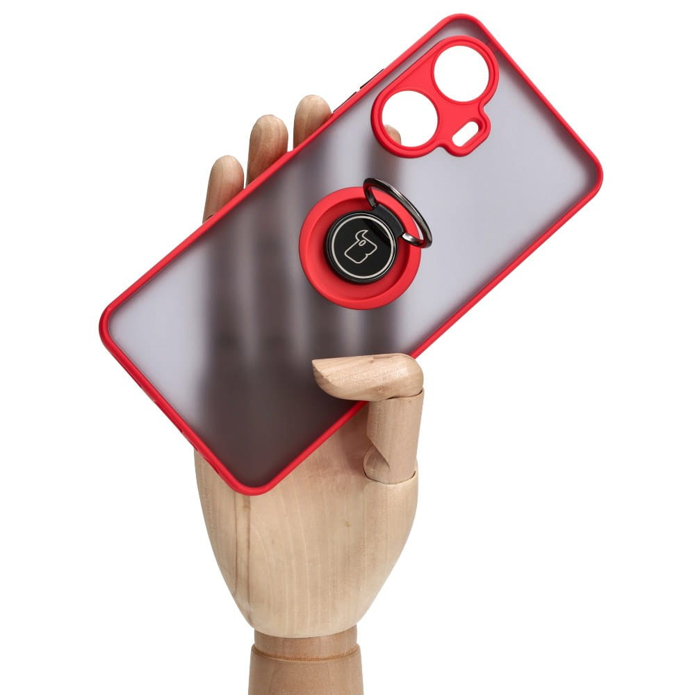 Etui z uchwytem na palec Bizon Case Hybrid Ring do Realme C55, przydymione z czerwoną ramką