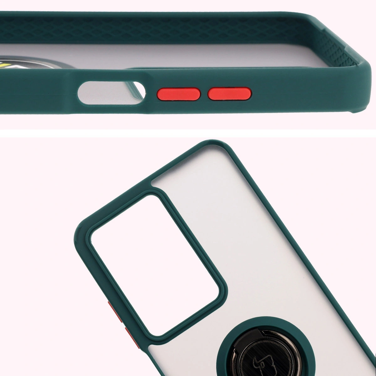 Etui z uchwytem na palec Bizon Case Hybrid Ring do Realme C75 4G / 14x 5G, przydymione z ciemnozieloną ramką
