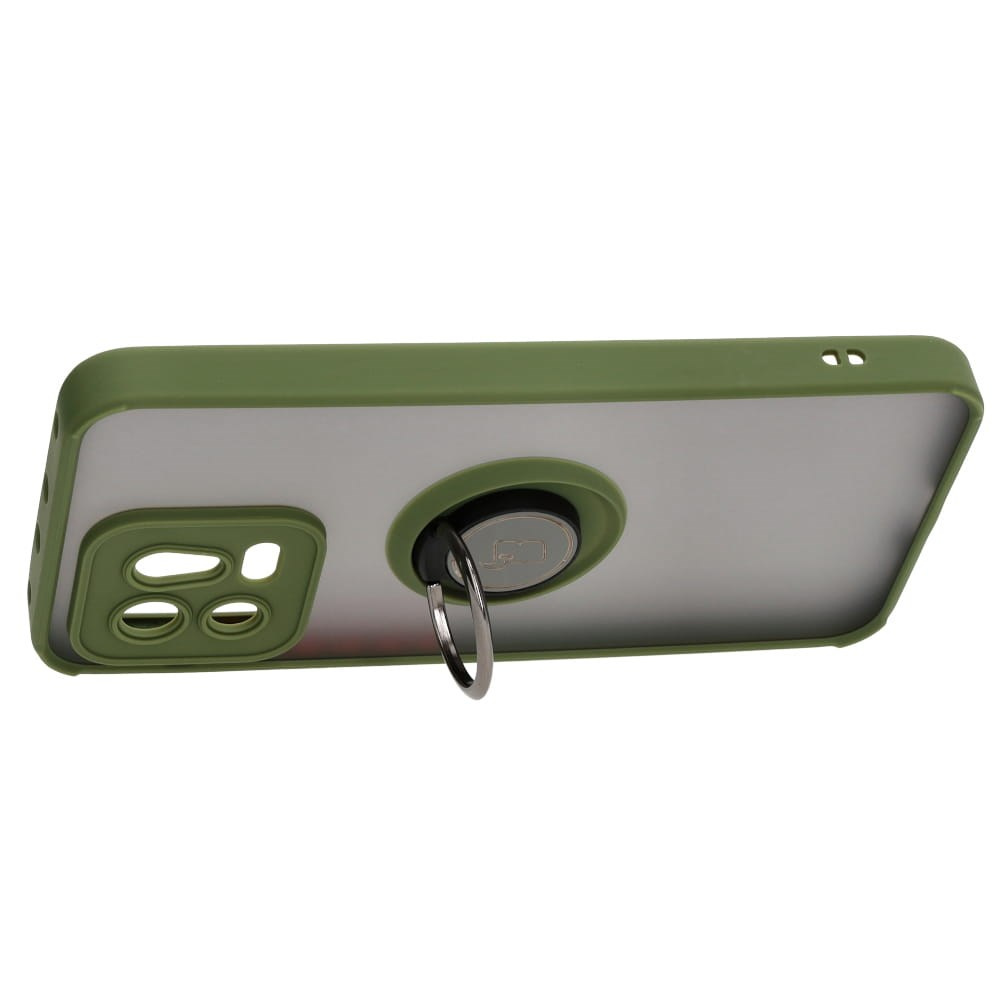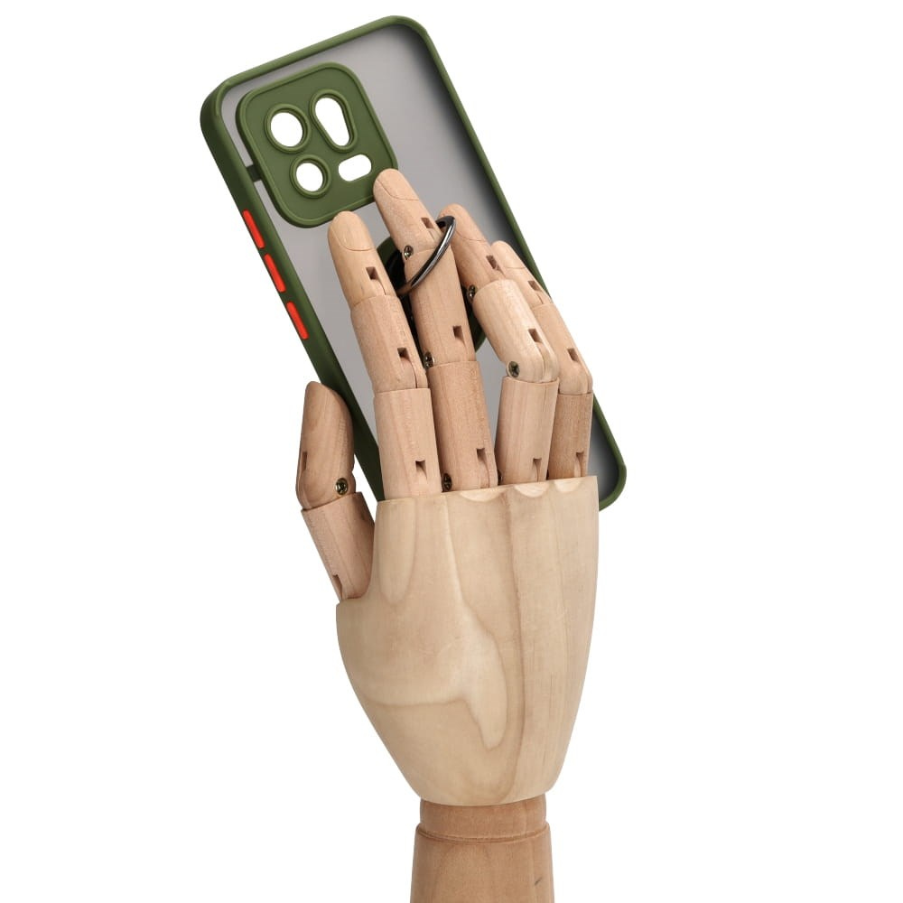 Etui z uchwytem na palec Bizon Case Hybrid Ring do Xiaomi 13, przydymione z zieloną ramką