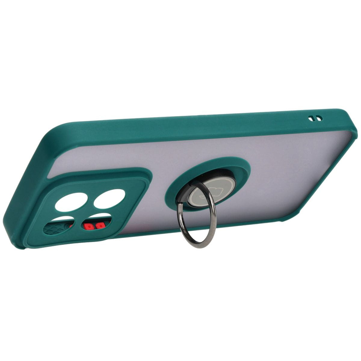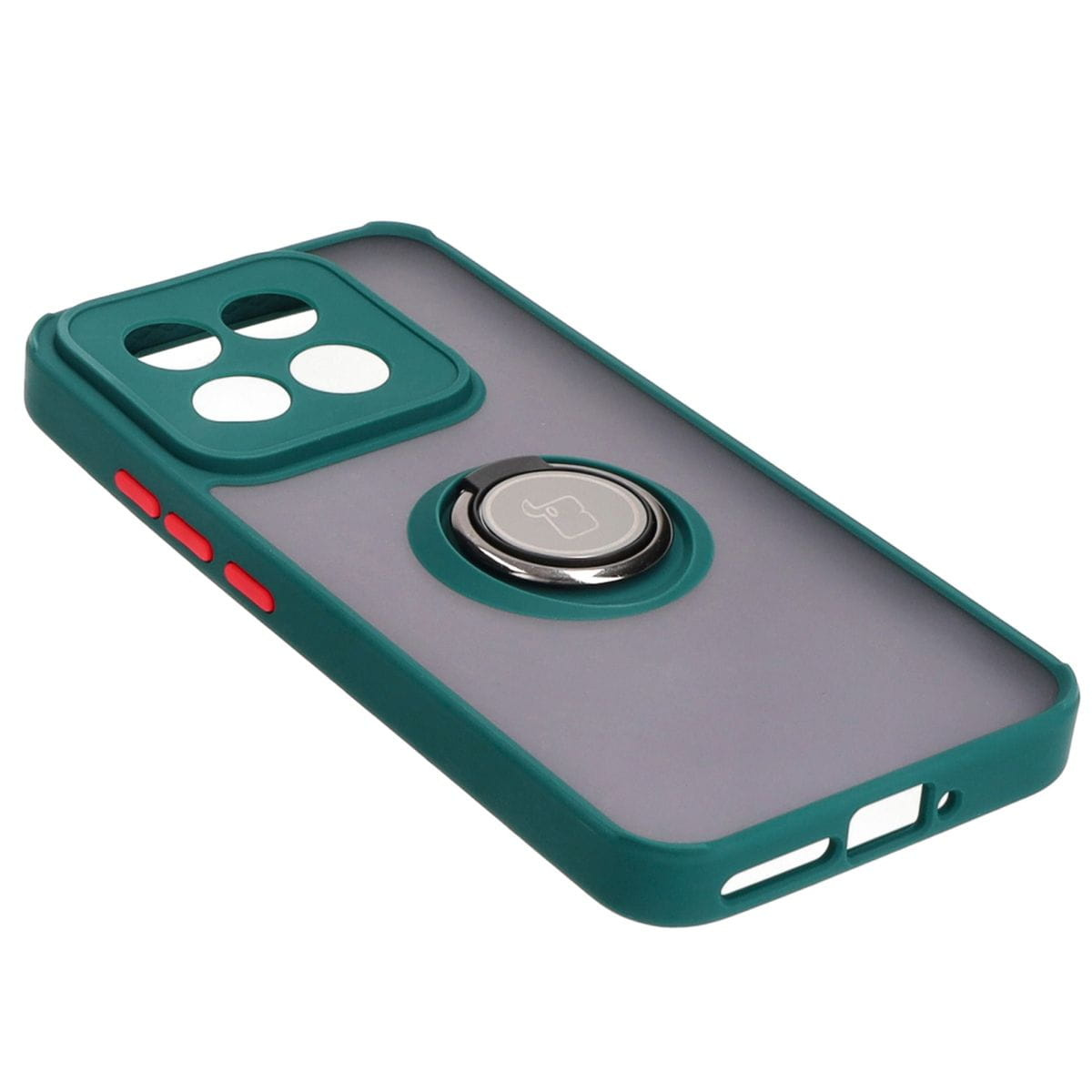 Etui z uchwytem na palec Bizon Case Hybrid Ring do Xiaomi 14, przydymione z ciemnozieloną ramką