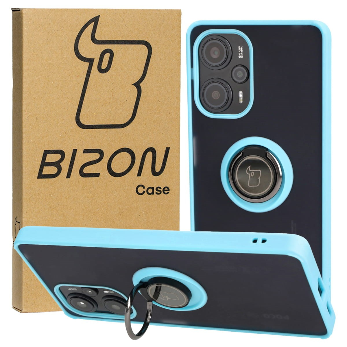 Etui z uchwytem na palec Bizon Case Hybrid Ring do Xiaomi Poco F5, przydymione z jasnoniebieską ramką