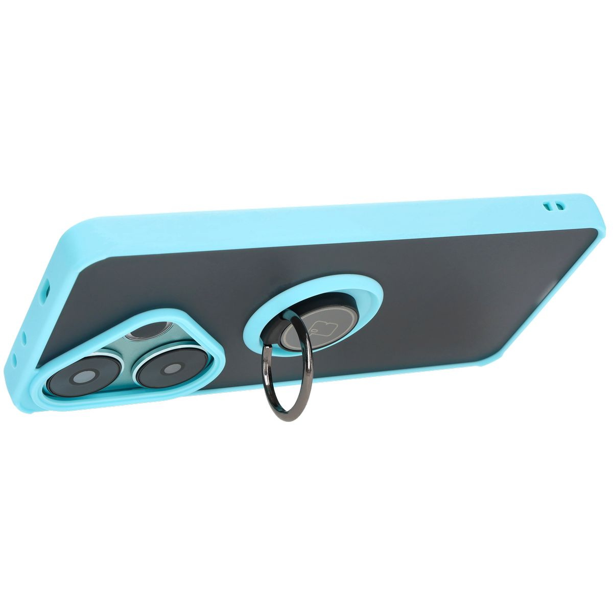Etui z uchwytem na palec Bizon Case Hybrid Ring do Xiaomi Poco F6, przydymione z jasnoniebieską ramką