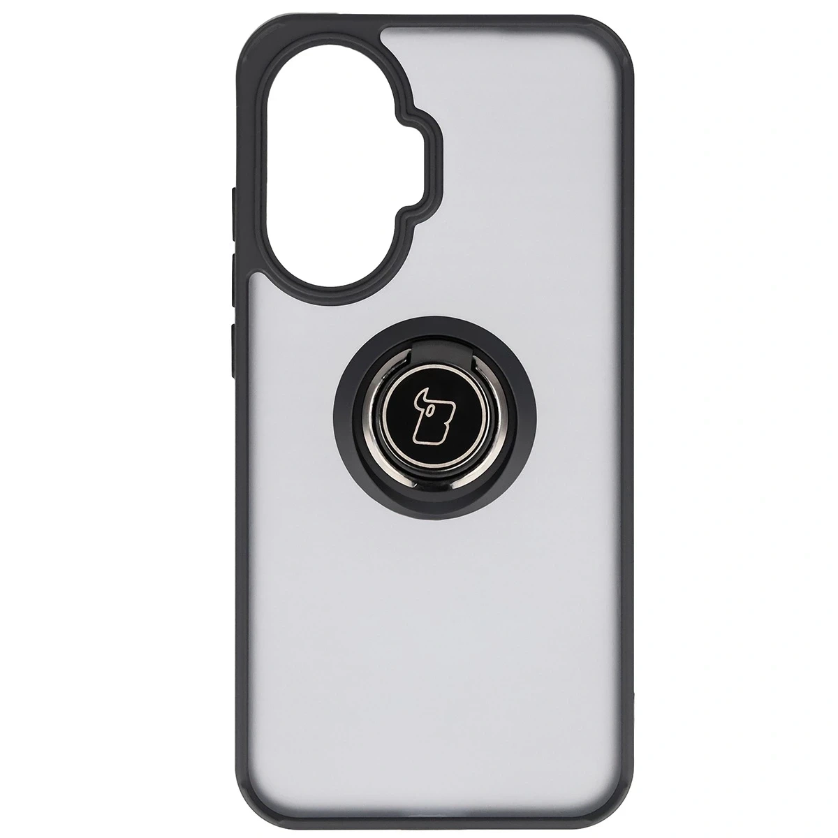 Etui z uchwytem na palec Bizon Case Hybrid Ring do Xiaomi POCO F7, przydymione z czarną ramką