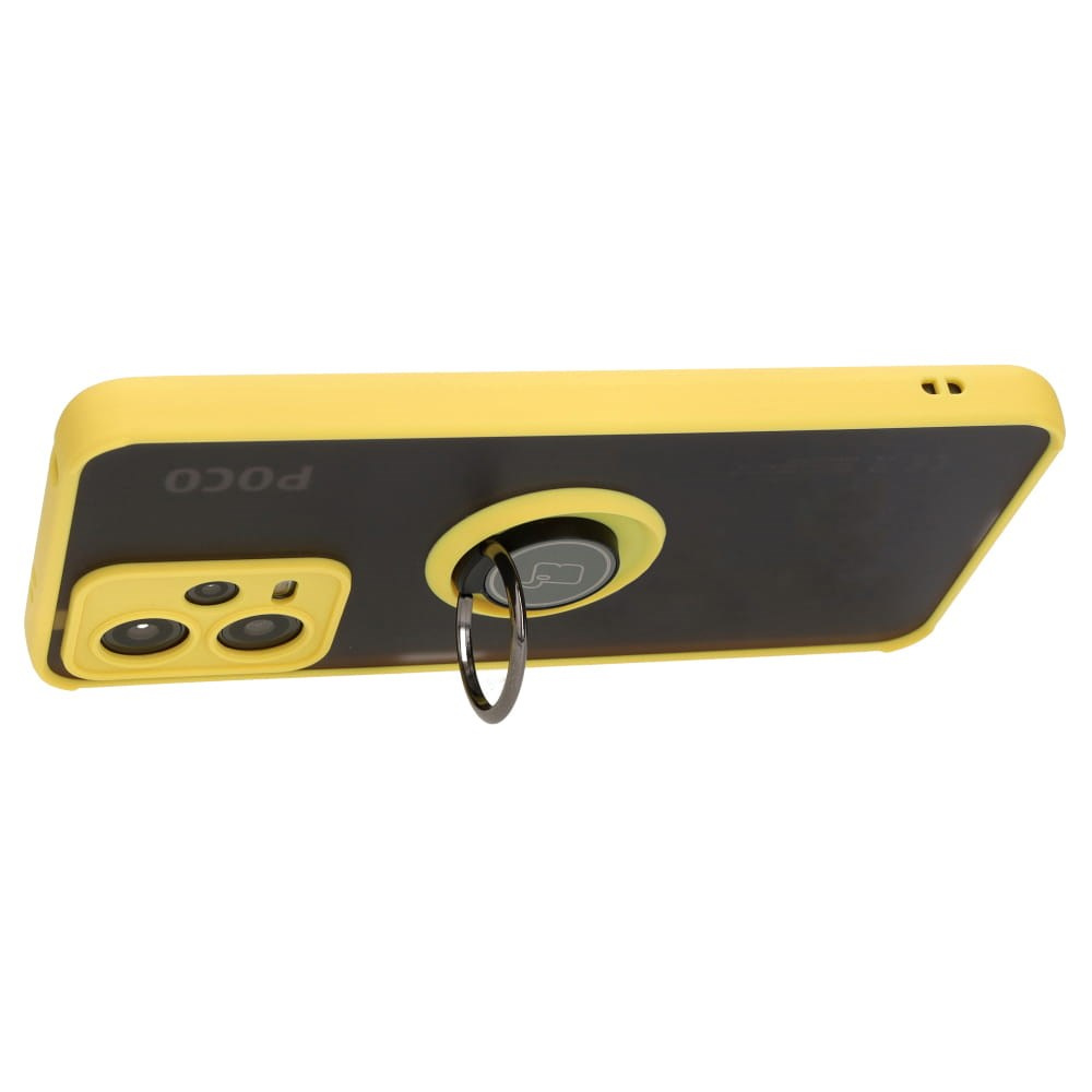 Etui z uchwytem na palec Bizon Case Hybrid Ring do Xiaomi Poco X5 / Redmi Note 12 5G, przydymione z żółtą ramką