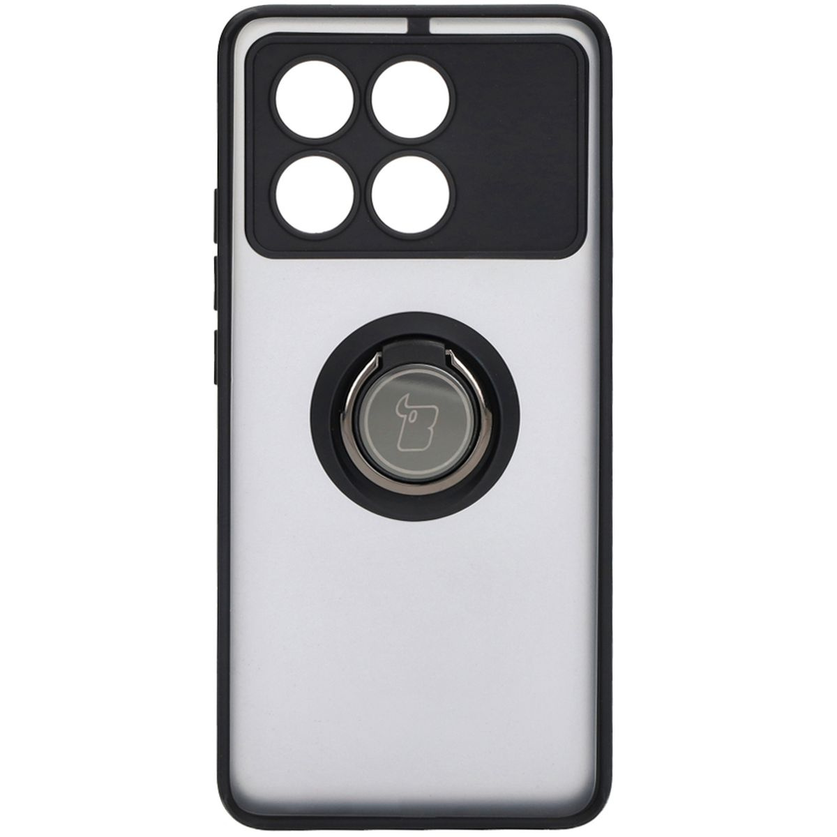 Etui z uchwytem na palec Bizon Case Hybrid Ring do Xiaomi Poco X6 Pro, przydymione z czarną ramką