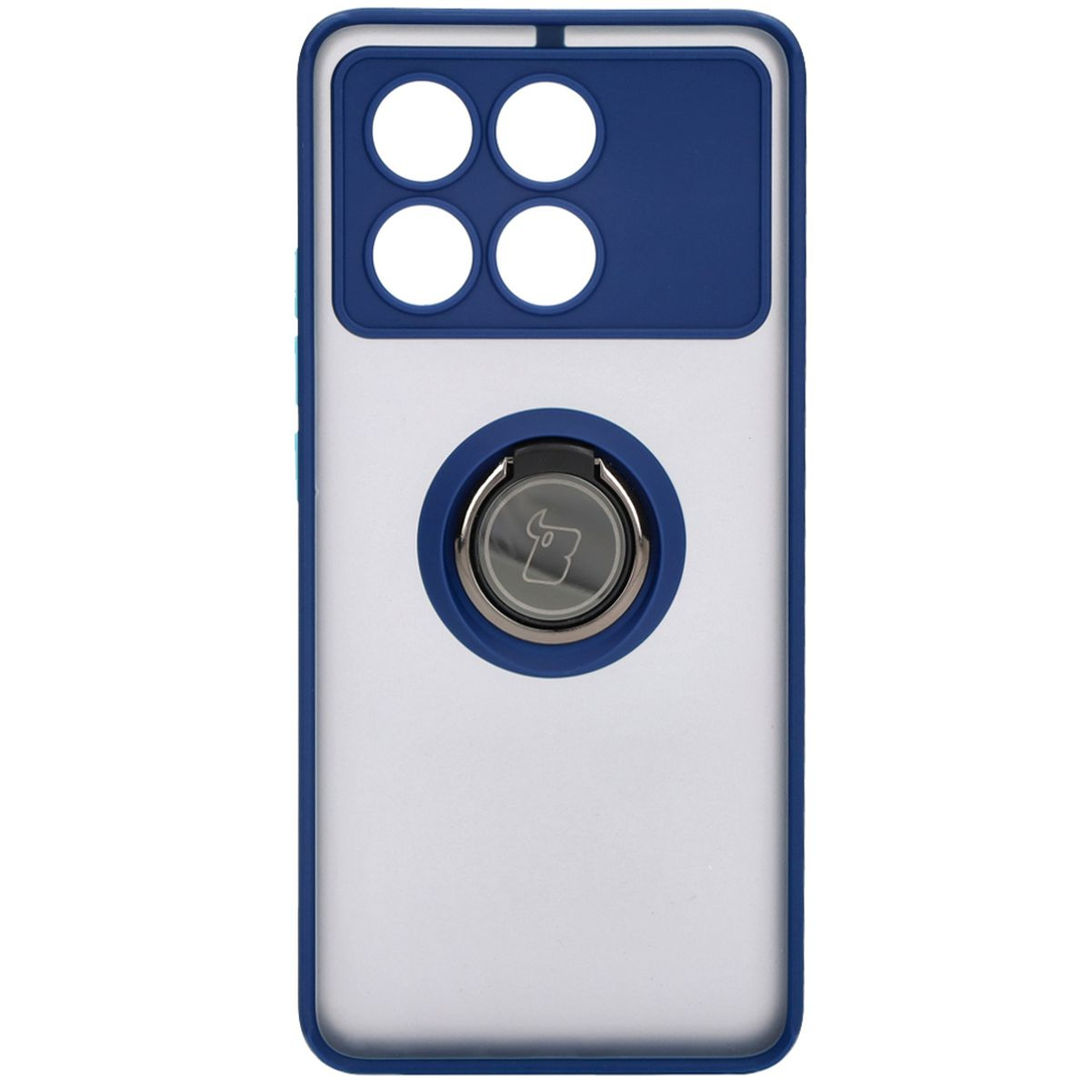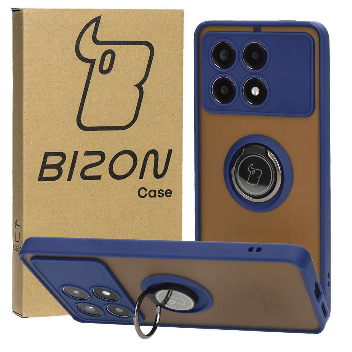 Etui z uchwytem na palec Bizon Case Hybrid Ring do Xiaomi Poco X6 Pro, przydymione z granatową ramką
