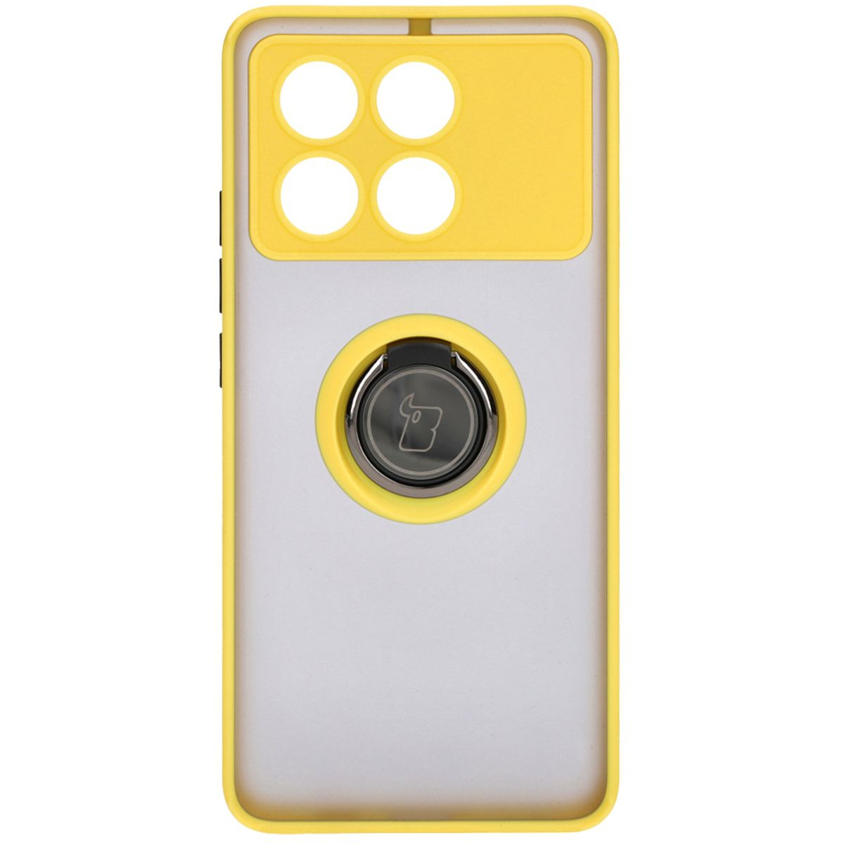 Etui z uchwytem na palec Bizon Case Hybrid Ring do Xiaomi Poco X6 Pro, przydymione z żółtą ramką