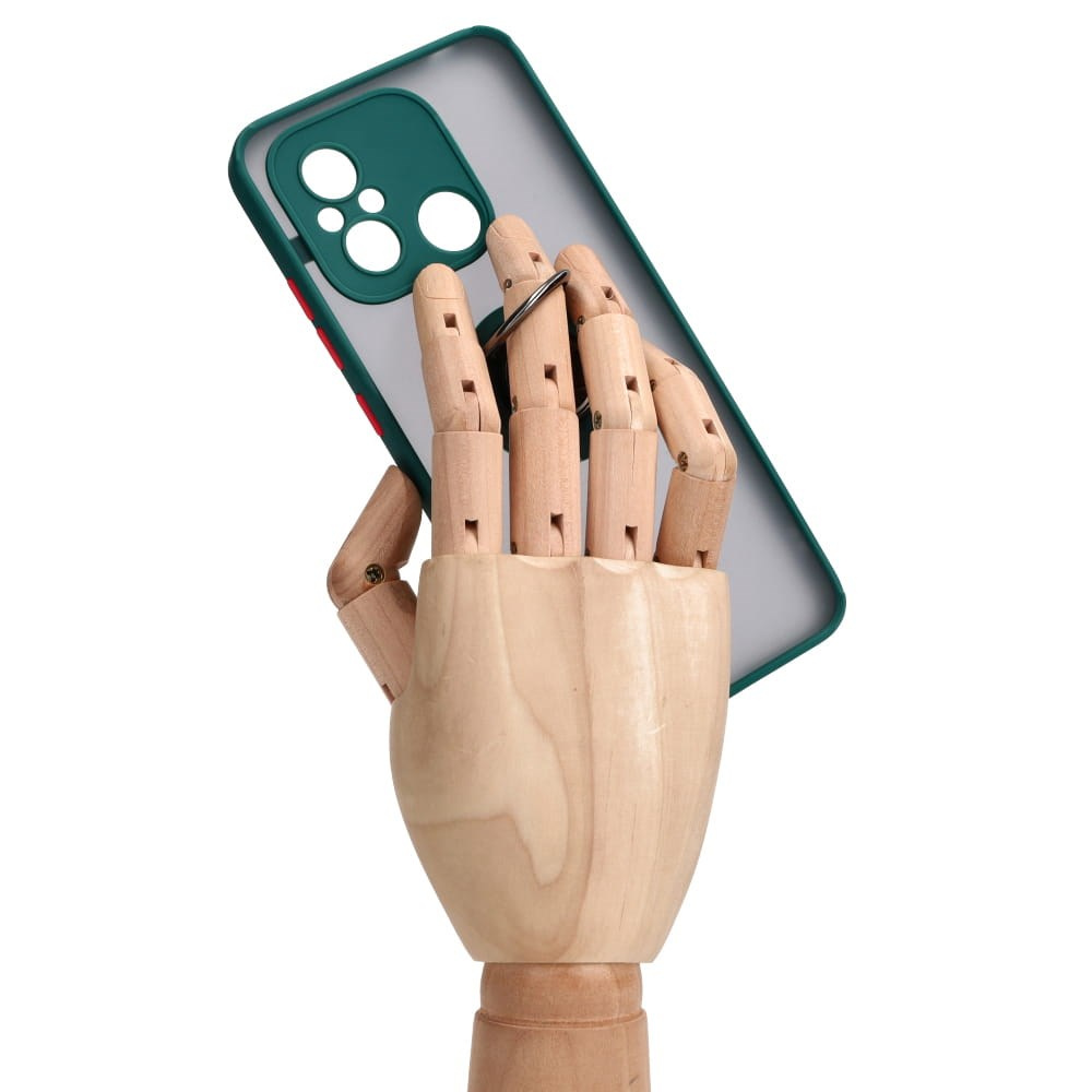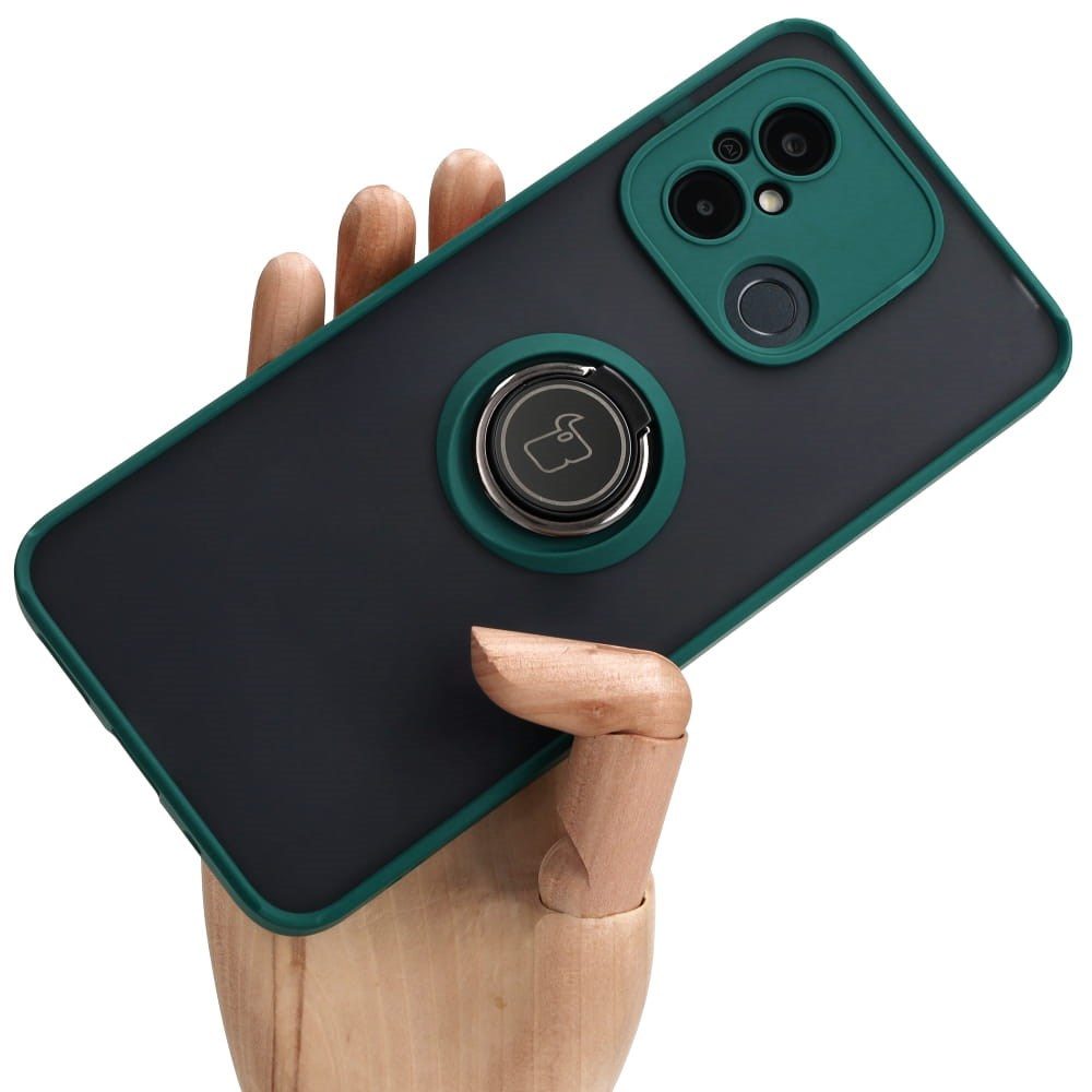 Etui z uchwytem na palec Bizon Case Hybrid Ring do Xiaomi Redmi 12C, przydymione z ciemnozieloną ramką
