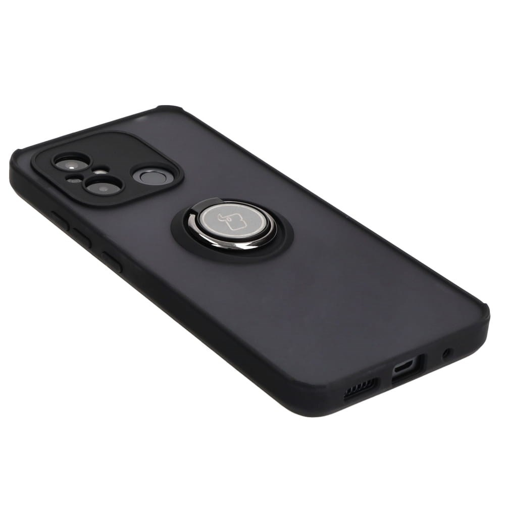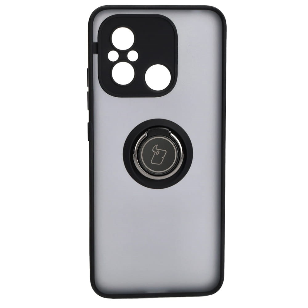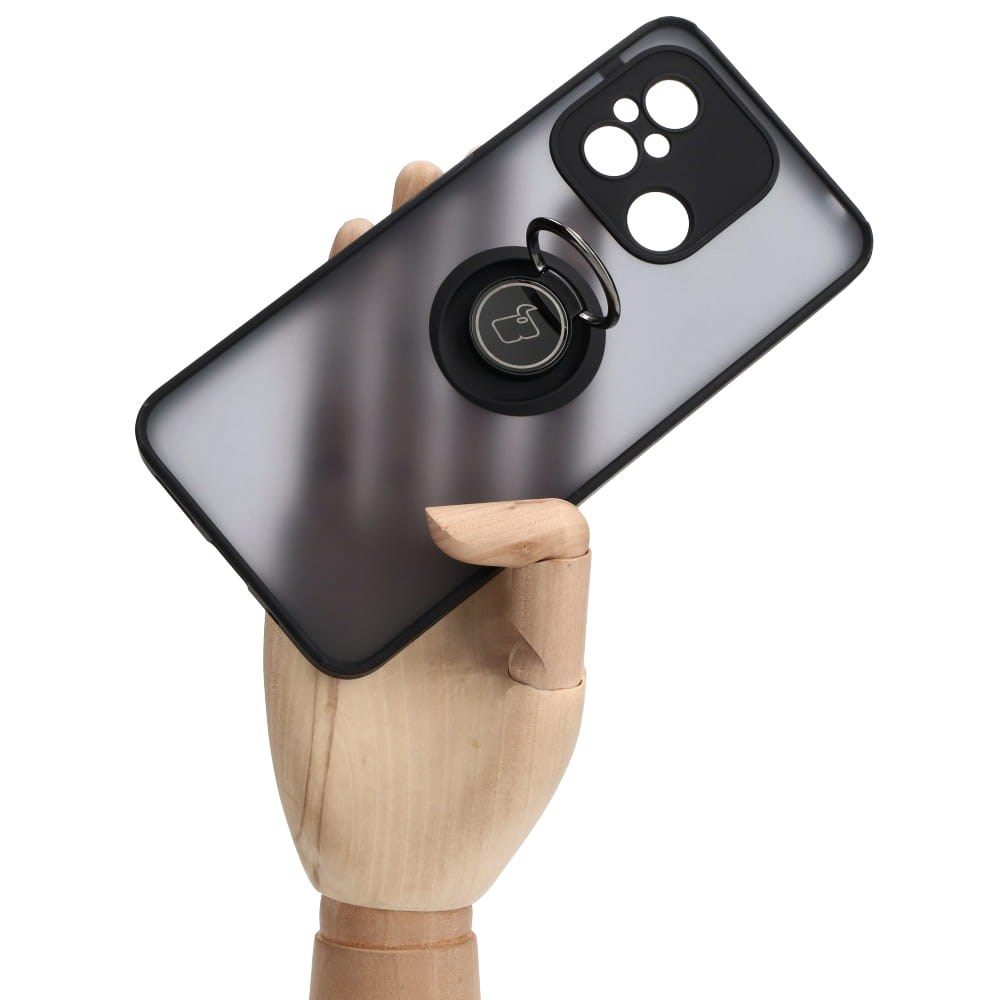 Etui z uchwytem na palec Bizon Case Hybrid Ring do Xiaomi Redmi 12C, przydymione z czarną ramką