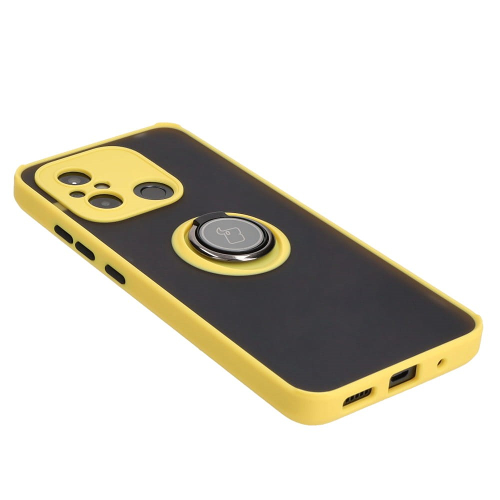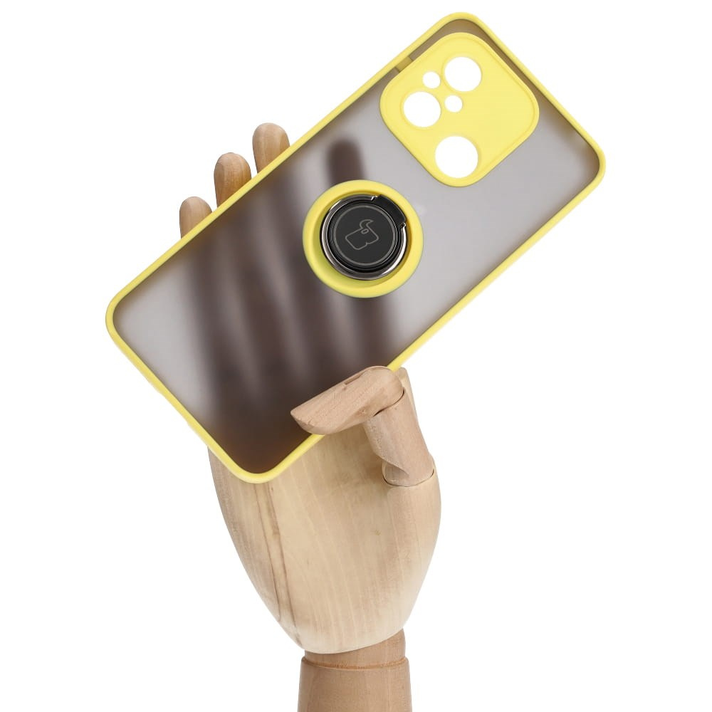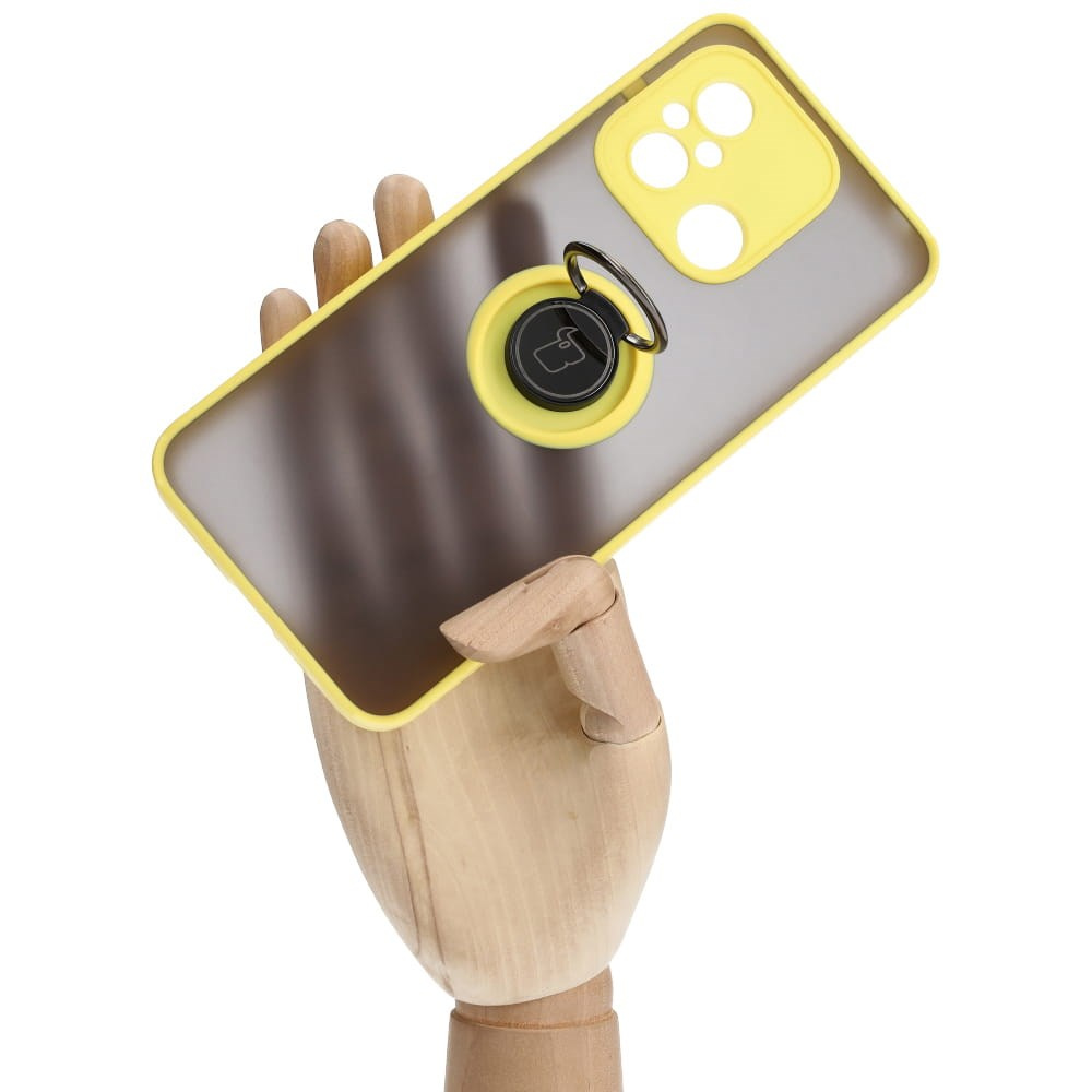 Etui z uchwytem na palec Bizon Case Hybrid Ring do Xiaomi Redmi 12C, przydymione z żółtą ramką
