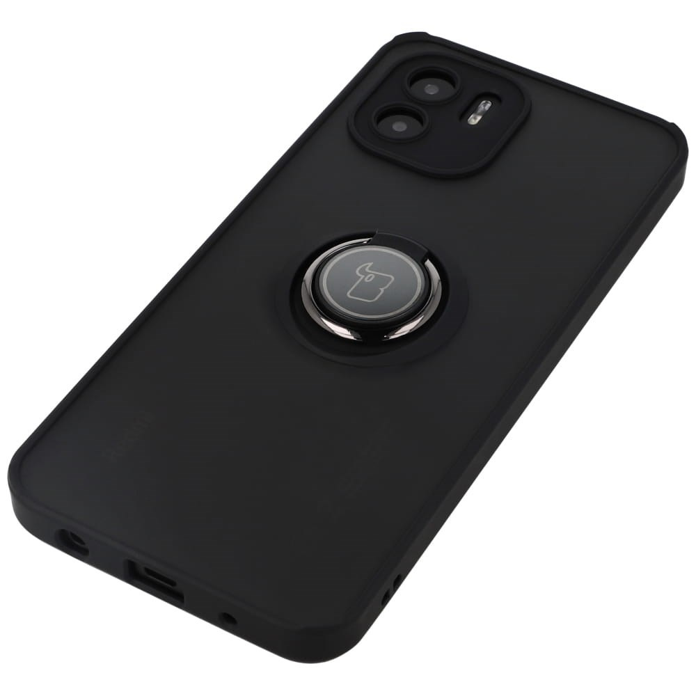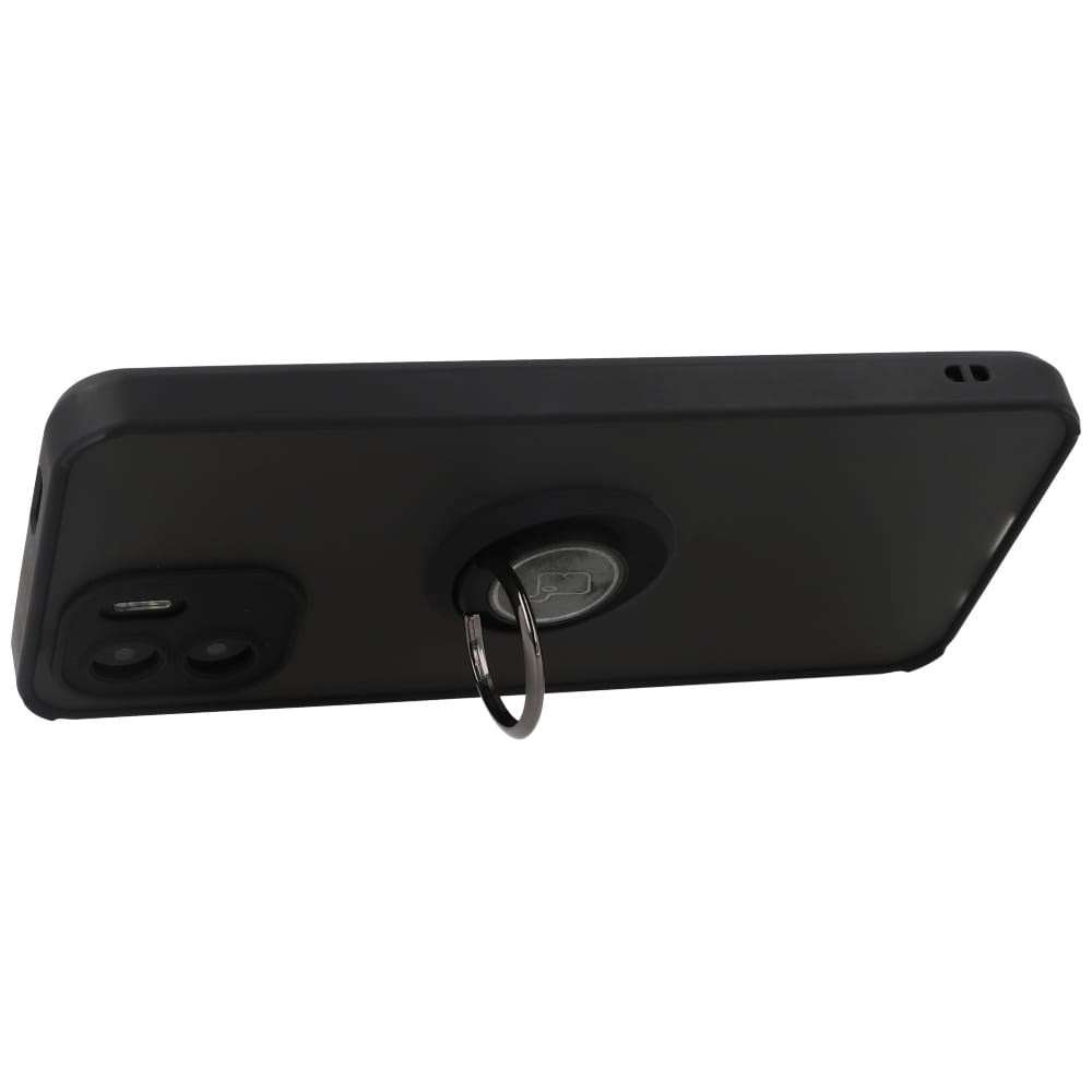 Etui z uchwytem na palec Bizon Case Hybrid Ring do Xiaomi Redmi A1, przydymione z czarną ramką