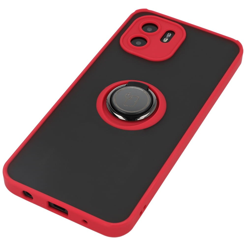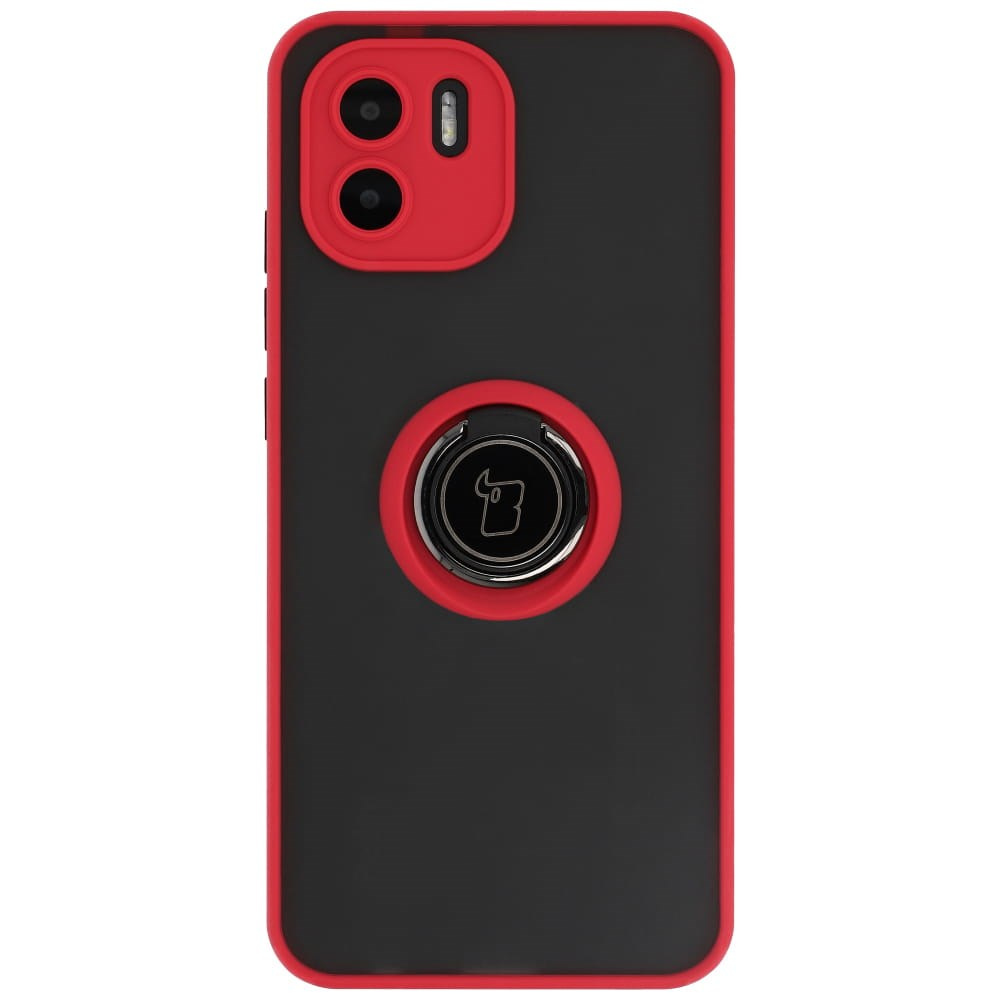 Etui z uchwytem na palec Bizon Case Hybrid Ring do Xiaomi Redmi A1, przydymione z czerwoną ramką
