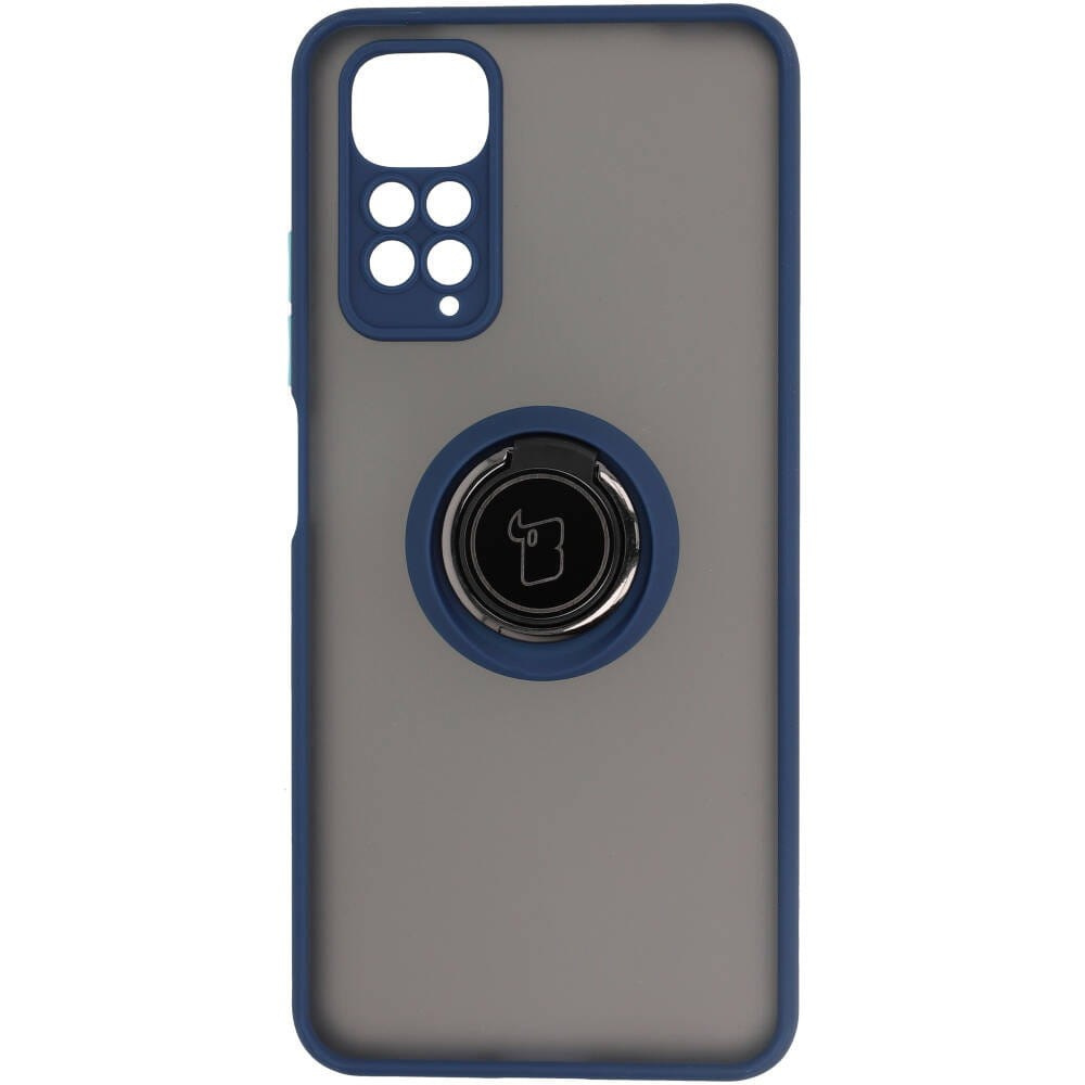 Etui z uchwytem na palec Bizon Case Hybrid Ring do Xiaomi Redmi Note 11 / 11S 4G, przydymione z granatową ramką