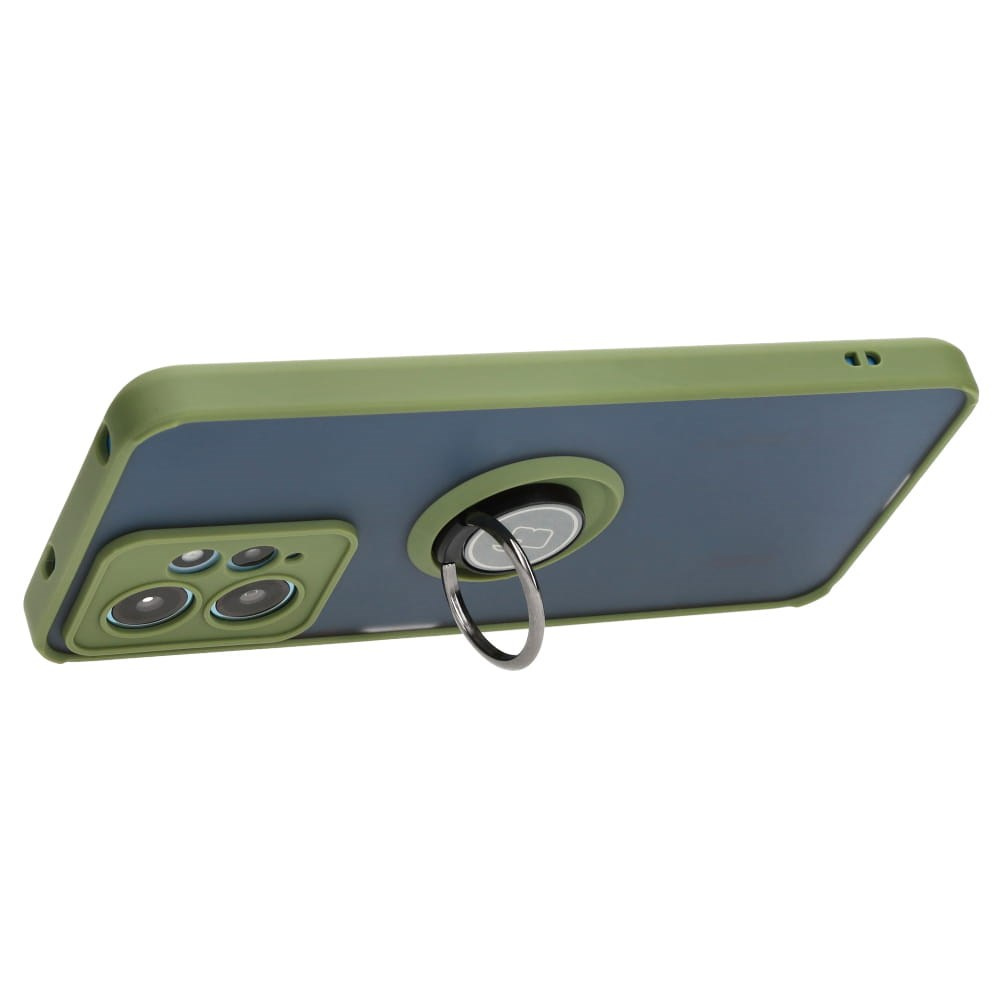 Etui z uchwytem na palec Bizon Case Hybrid Ring do Xiaomi Redmi Note 12 4G, przydymione z zieloną ramką