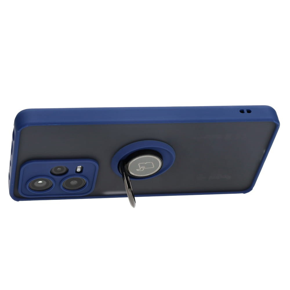 Etui z uchwytem na palec Bizon Case Hybrid Ring do Xiaomi Redmi Note 12 Pro+ 5G, przydymione z granatową ramką