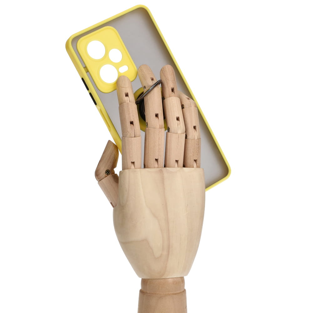 Etui z uchwytem na palec Bizon Case Hybrid Ring do Xiaomi Redmi Note 12 Pro+ 5G, przydymione z żółtą ramką