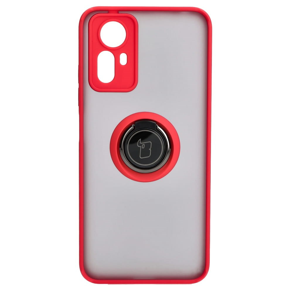Etui z uchwytem na palec Bizon Case Hybrid Ring do Xiaomi Redmi Note 12S, przydymione z czerwoną ramką