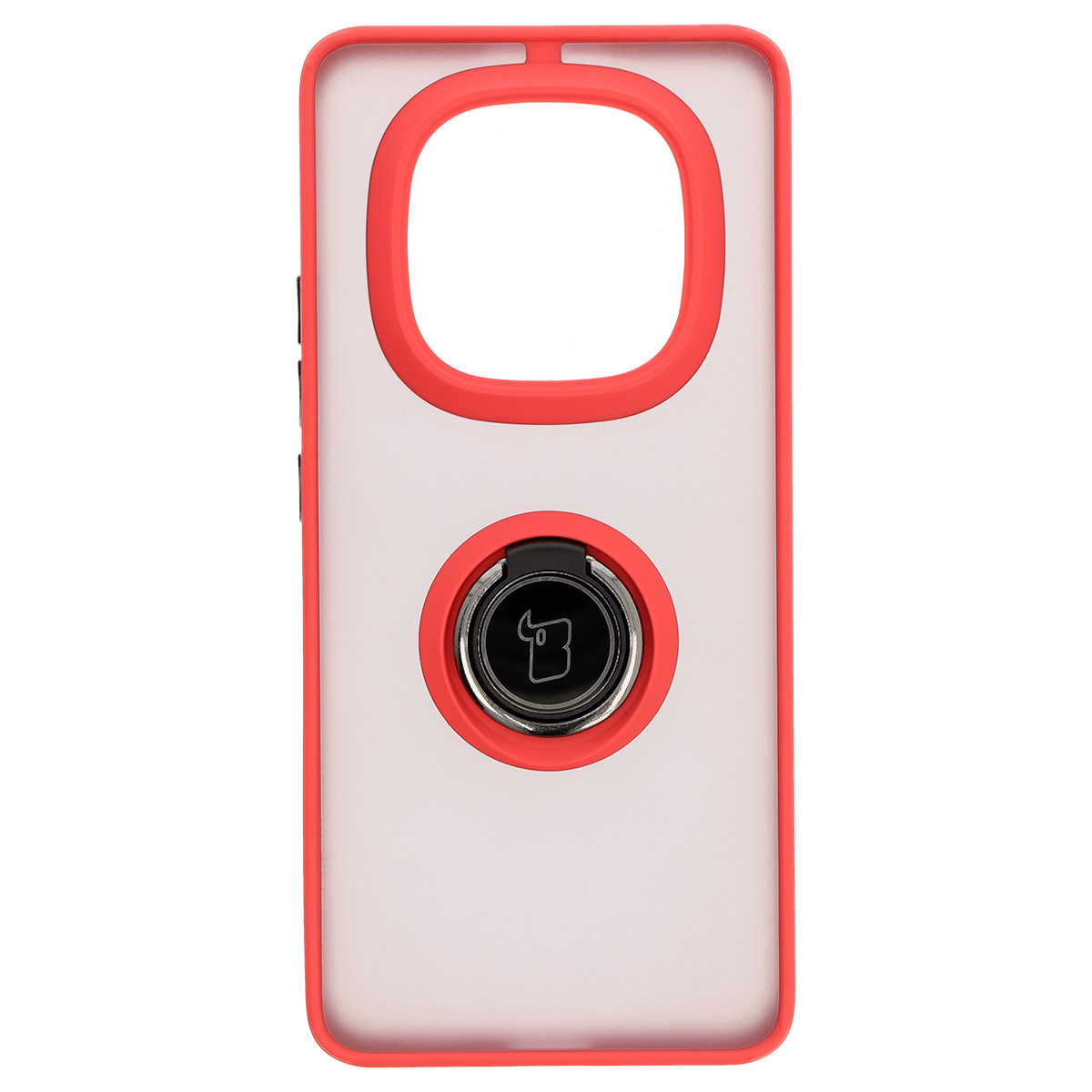 Etui z uchwytem na palec Bizon Case Hybrid Ring do Xiaomi Redmi Note 14 Pro Plus 5G, przydymione z czerwoną ramką