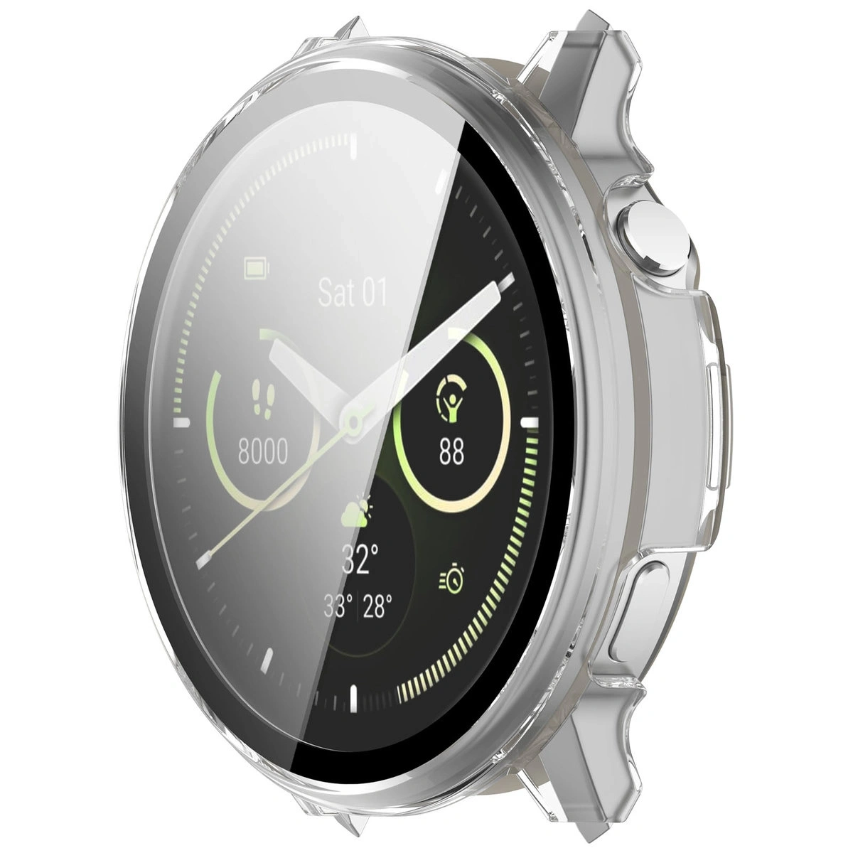 Etui na zegarek od marki Bizon z serii Case Watch Adamo zapewnia mocną oraz pewną ochronę Twojego smartwatcha przed zarysowaniami i zabrudzeniami. Etui posiada wbudowane szkło o grubości 0,33 mm, które nie zwiększa wagi urządzenia, a jednocześnie skutecznie je zabezpiecza.