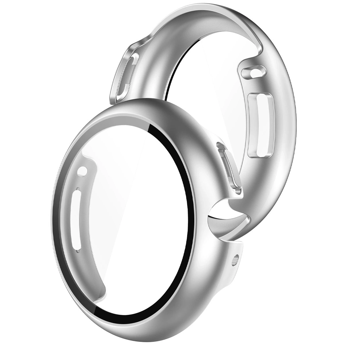 Etui ze szkłem do zegarka Bizon Case Watch Adamo do Google Pixel Watch 4 45 mm, matowe srebrne