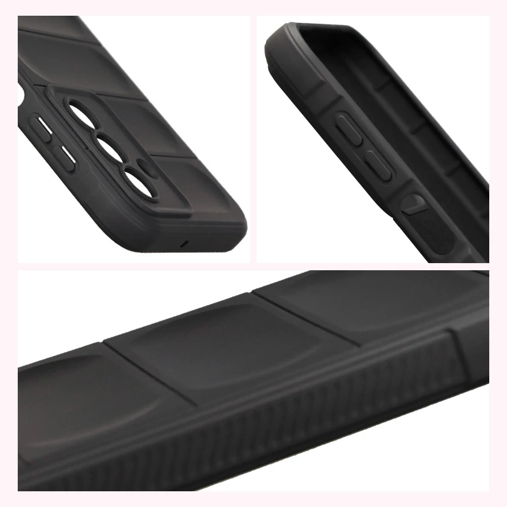 Wzmocnione narożniki oraz delikatnie podniesione krawędzie zapewniają dodatkową ochronę, z kolei teksturowane boki pozwalają pewniej trzymać telefon, zapobiegając przypadkowemu wysunięciu się urządzenia z dłoni.