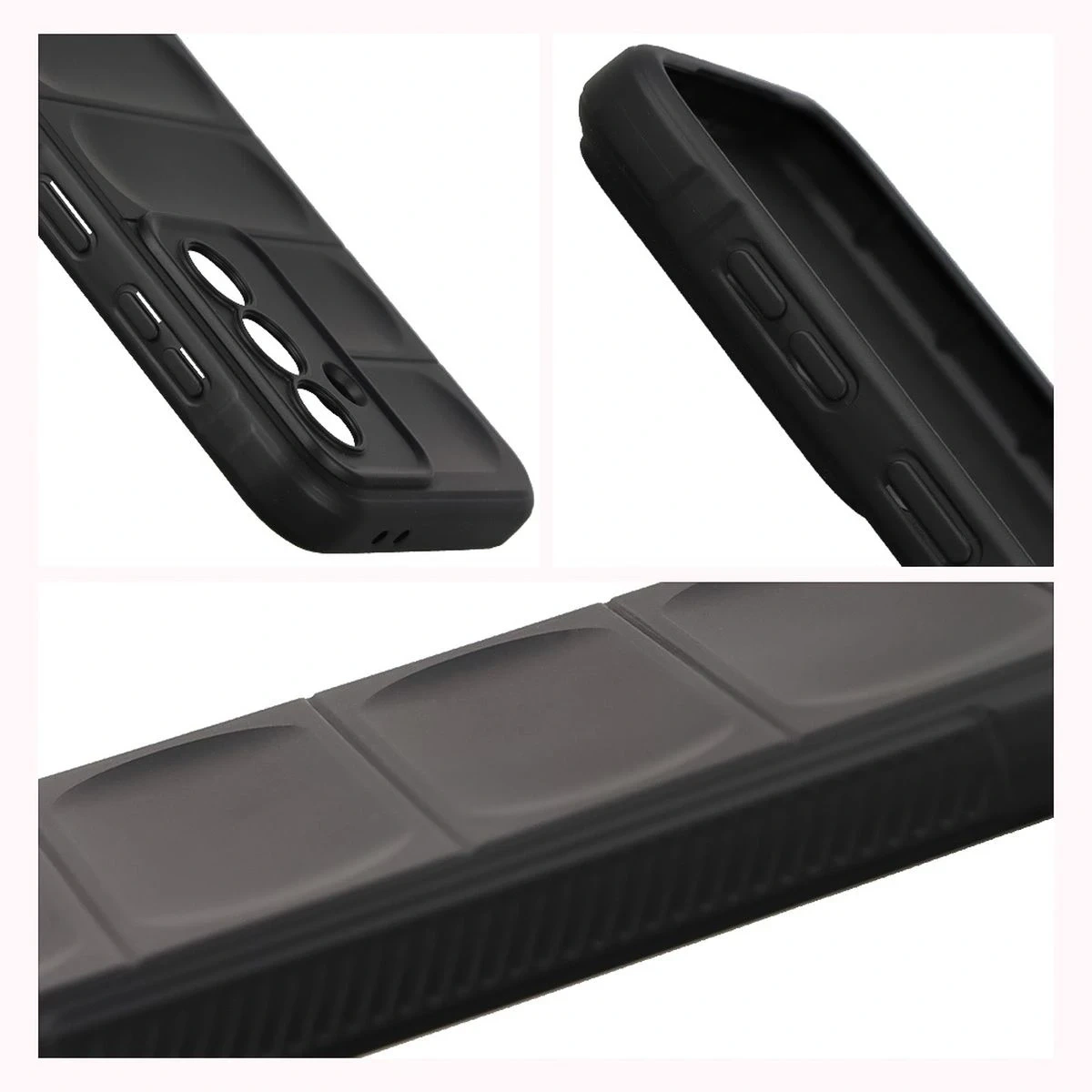 Wzmocnione narożniki oraz delikatnie podniesione krawędzie zapewniają dodatkową ochronę, z kolei teksturowane boki pozwalają pewniej trzymać telefon, zapobiegając przypadkowemu wysunięciu się urządzenia z dłoni.