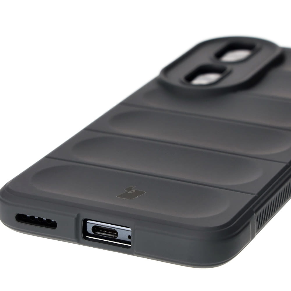 Wzmocnione narożniki oraz delikatnie podniesione krawędzie zapewniają dodatkową ochronę, z kolei teksturowane boki pozwalają pewniej trzymać telefon, zapobiegając przypadkowemu wysunięciu się urządzenia z dłoni.