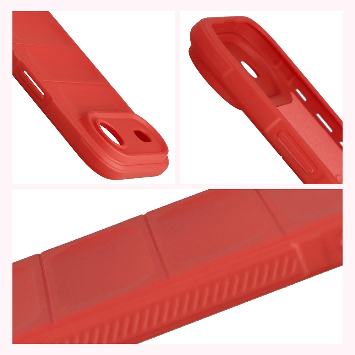 Wzmocnione narożniki oraz delikatnie podniesione krawędzie zapewniają dodatkową ochronę, z kolei teksturowane boki pozwalają pewniej trzymać telefon, zapobiegając przypadkowemu wysunięciu się urządzenia z dłoni.