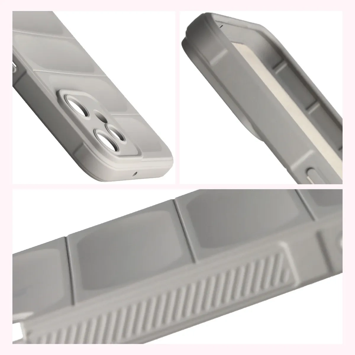 Wzmocnione narożniki oraz delikatnie podniesione krawędzie zapewniają dodatkową ochronę, z kolei teksturowane boki pozwalają pewniej trzymać telefon, zapobiegając przypadkowemu wysunięciu się urządzenia z dłoni.