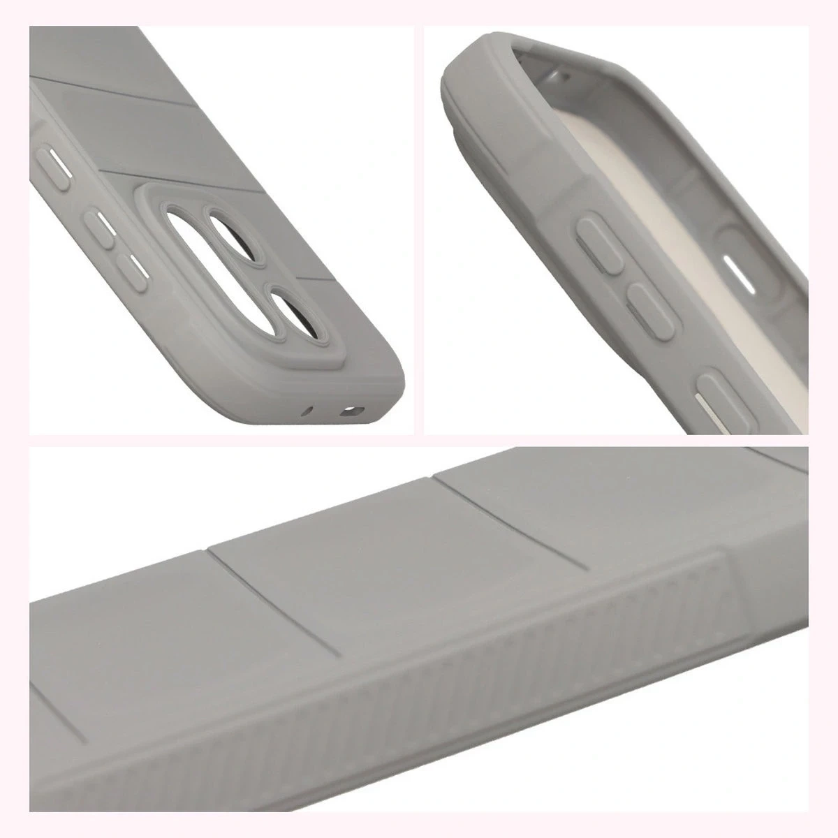Wzmocnione narożniki oraz delikatnie podniesione krawędzie zapewniają dodatkową ochronę, z kolei teksturowane boki pozwalają pewniej trzymać telefon, zapobiegając przypadkowemu wysunięciu się urządzenia z dłoni.