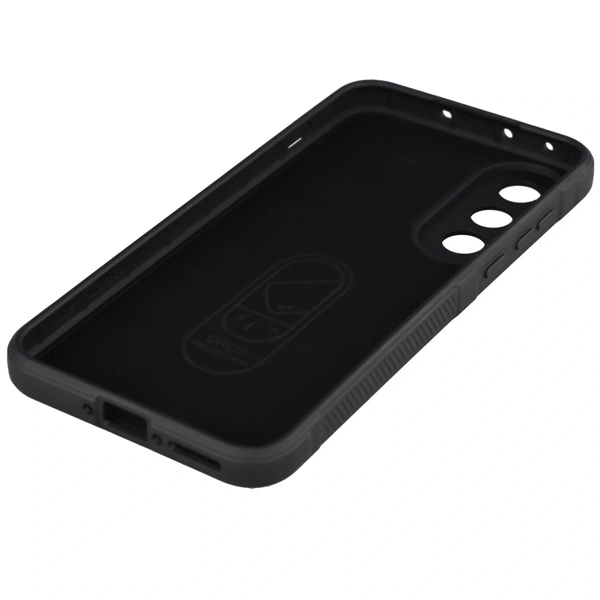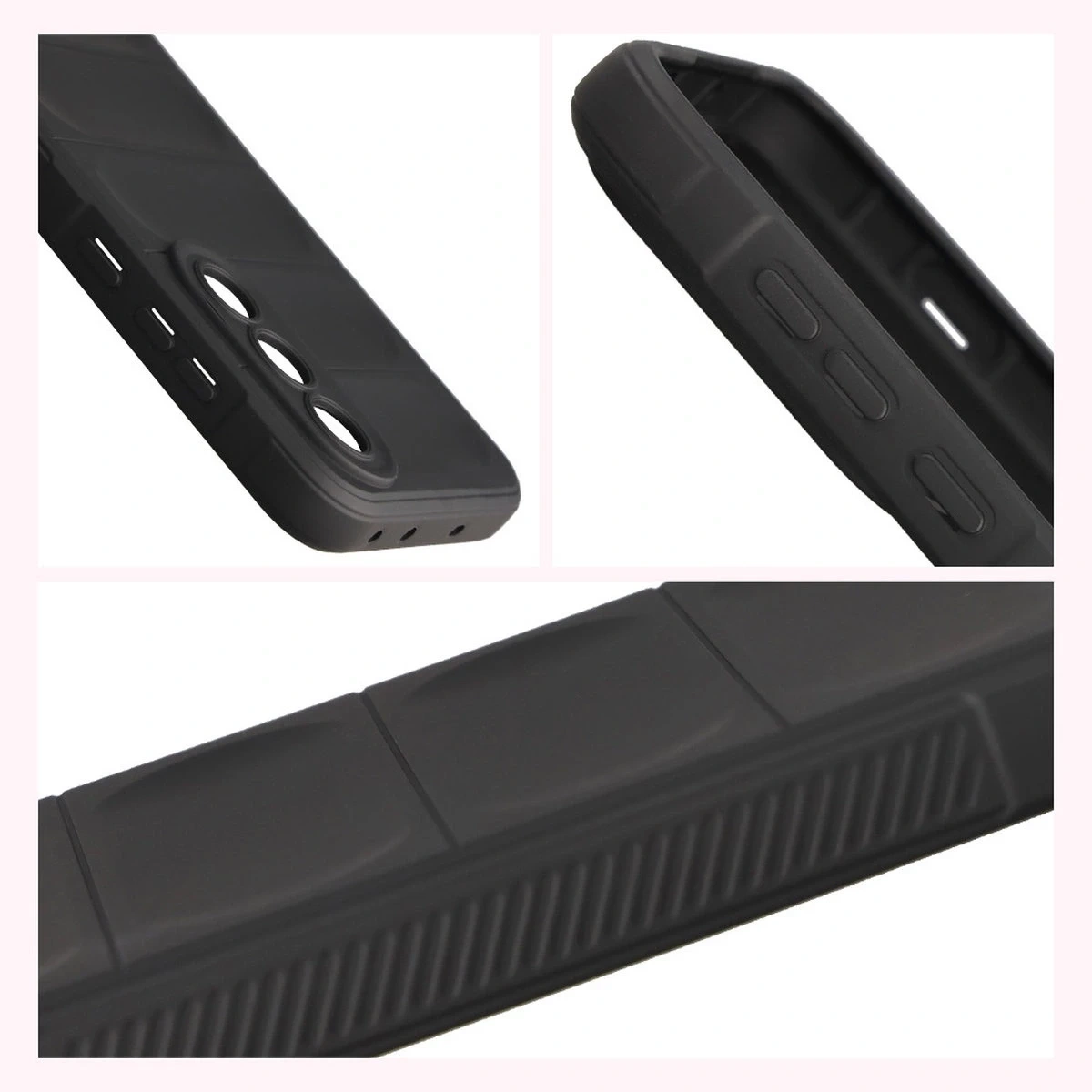 Wzmocnione narożniki oraz delikatnie podniesione krawędzie zapewniają dodatkową ochronę, z kolei teksturowane boki pozwalają pewniej trzymać telefon, zapobiegając przypadkowemu wysunięciu się urządzenia z dłoni.